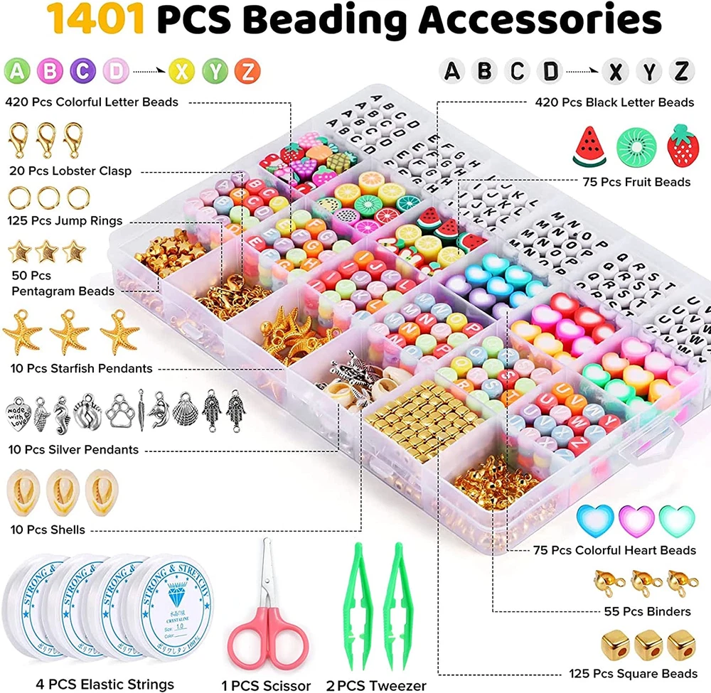 Menu Other Items Feedbacks About Us Contact Us Add To Favorites Bracelet Making Kit, 7400 Pcs Clay Beads Flat round Clay Beads for Jewelry Making Crafts Gift for Girls Ages 3-12(2 Box) ๐๐ฅ๐ฅ ๐ข๐ง ๐๐ง๐ ๐๐๐ญ ๐๐ซ๐๐๐๐ฅ๐๐ญ ๐๐๐ค๐ข๐ง๐ ๐๐ข๐ญ: Include 7400 different polymer clay beads, 1400 charms, 4 rolls of 1-meter elastic strings, 1 scissor, 1 tweezer.(not included display stand) ๐๐จ๐ซ๐ ๐๐ฉ๐ญ๐ข๐จ๐ง๐ฌ, ๐๐ฎ๐๐ก ๐๐จ๐ซ๐ ๐ ๐ฎ๐ง: This will make your jewelry more beautiful personalized and interesting,Great Gift for Valentine's Day ๐๐จ๐ฎ๐ซ ๐๐๐๐๐ญ๐ฒ ๐๐จ๐ฆ๐๐ฌ ๐ ๐ข๐ซ๐ฌ๐ญ: Our beads made of polymer clay, a type of PVC material. ๐๐ข๐๐ ๐๐ฉ๐ฉ๐ฅ๐ข๐๐๐ญ๐ข๐จ๐ง: This Beads is wonderful for all kinds of jewelry making, DIY handicrafts,and so on ๐๐ซ๐๐๐ญ ๐๐ข๐๐ญ ๐๐จ๐ซ ๐๐ก๐ข๐ฅ๐๐ซ๐๐ง๏ผTurn the children's attention on crafts work Product Description Colorful beads Letter beads Hearts & fruits beads Parent Child String Many Color Series Satisfy Your Demand Ours How to Use Can make Parent &Child Strings 1 Parent Child String 2 Many Color Series 3 Satisfy Your Demand 4 Ours 5 How to Use Great gift for your children The video showcases the product in use. The video guides you through product setup. The video compares multiple products. The video shows the product being unpacked. Item Specification Item dimensions L x W x H 8.86 x 6.3 x 2.76 inches Number of Items 7400 Color colorful Included Components 7400 polymer clay beads, 1400 charms, 4 rolls of elastic strings, 1 scissor, 1 tweezer Material Polymer Clay (PVC) Country of Origin China Style Modern Item Weight 1 pounds Theme Crafting Model Name bracelet making kit , beads for jewelry making, beads for bracelets making ,clay Bracelet Making Kit ,clay bead for bracelet making bracelet making kit for girls clay bead kit diy bracelet making kit Seasons Summer Age Range (Description) Kid Art Craft Kit Type Jewelry Making Kit Number of Pieces 7400 Product Dimensions 8.86 x 6.3 x 2.76 inches Dimensions Shipping Returns Additional Info Product Dimensions: 6.3 inches x 8.86 inches x 2.76 inches. Weight: 1.0 lb Fast shipping is very important for us. Our standard shipping service is FREE. Your order will be shipped within 1-3 business days upon full payment received. Most items are delivered within 3-5 business days, however, please allow 3-10 business days. We are shipping only to USA. We only ship to the confirmed Paypal address. We reserve the right to cancel any order for any reason at any time. We are not responsible for undeliverable addresses. We offer a 30 day return policy from checkout winning date. Your satisfaction is guaranteed! If for any reason you are unhappy with your item, just return it within 30 days for a full refund, minus shipping cost. Please contact us prior to initiating a return so that we can issue you a refund authorization. Items defective upon receipt must be packaged in their retail packaging as if new and returned with a detailed description of the problem. Return shipping fees are not refundable. We reserve the right to decline any returns if the above guidelines are not followed. All of our items, unless otherwise stated, will only run on 120 volts. Please check to make sure your country complies with these specifications. If you have a problem or question regarding your transaction please contact us before leaving any type of feedback. We will work with you to resolve any problem you may have.