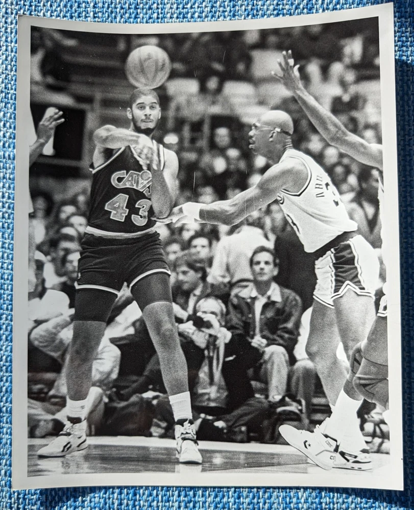 This is an original Type 1 photo featuring Brad Daugherty of the Cleveland Cavs facing off against Kareem Abdul-Jabbar of the Los Angeles Lakers in 1989. We do not guarantee any PSA or other photo authentication grade by listing this as a Type 1 (aka Type I) photo in the description. The description is based on our understanding and experience with handling many vintage photos over the years.