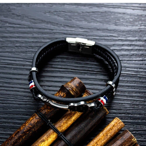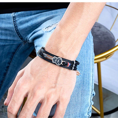 Style:Cuff, BangleMain Stone:Not ApplicableClasp Type:Box/SnapTheme:MusicMetal:Stainless SteelMaterial:LeatherBrand:UnbrandedMPN:Does not applyType:Braceletgtin13:Does not applyUPC:Does not applyColor:Black