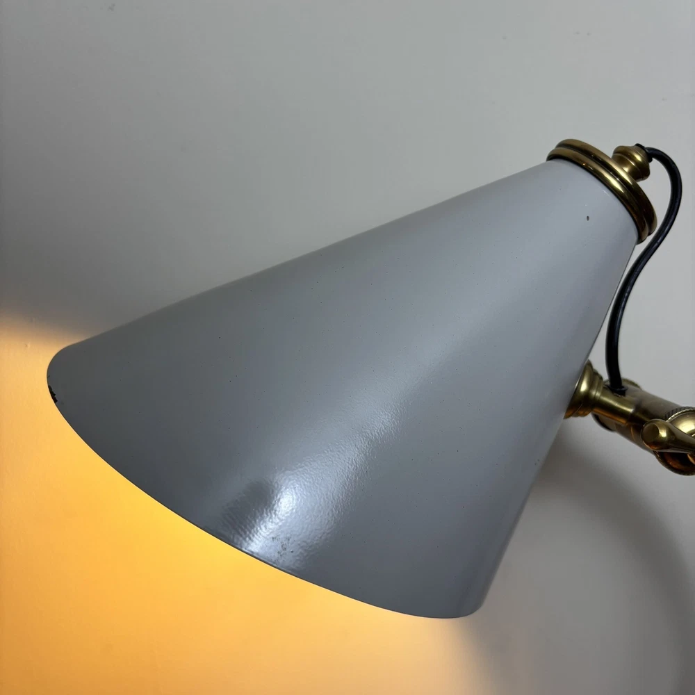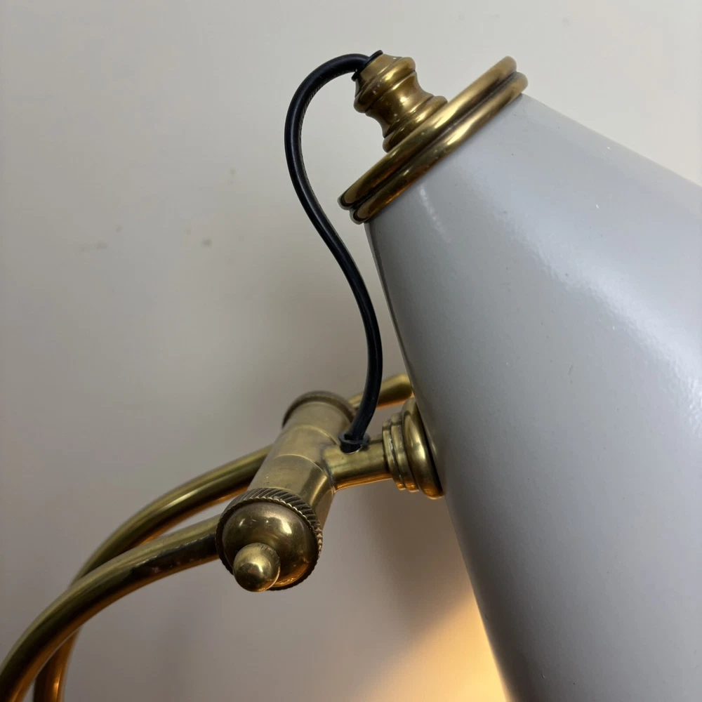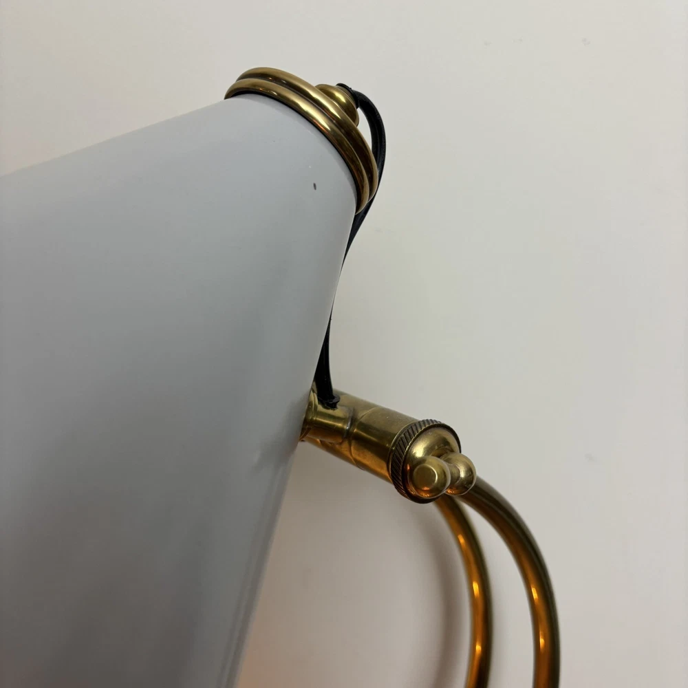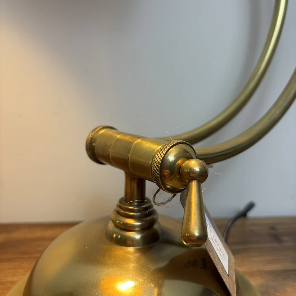 Brass Desk Lamp An incredibly aesthetic desk lamp that blends an antique brass look with a contemporary shade. The main body has a traditional and somewhat vintage look that is contasted with the more modern style shade. This contrast creates a lamp that feels homely and unique. There are two levers to adjust the lamp. One adjusts the angle of the arm and the other adjusts the angle of the shade. These are super tactile and a great feature to adjust the lamp to any space. These come complete with LED bulb and built in, in-line switch. *Please note that this lamp is ex-display. This does have a small imperfection where the paintwork on the shade is chipped. This is therefore offered at a heavily discounted rate. So if you can live with this imperfection, you’ll be grabbing a bargain!* Measurements: Height: 50cm Base Diameter: 18cm Shade Diameter: 20cm Free U.K. delivery via Royal Mail. Please enquire for more details.