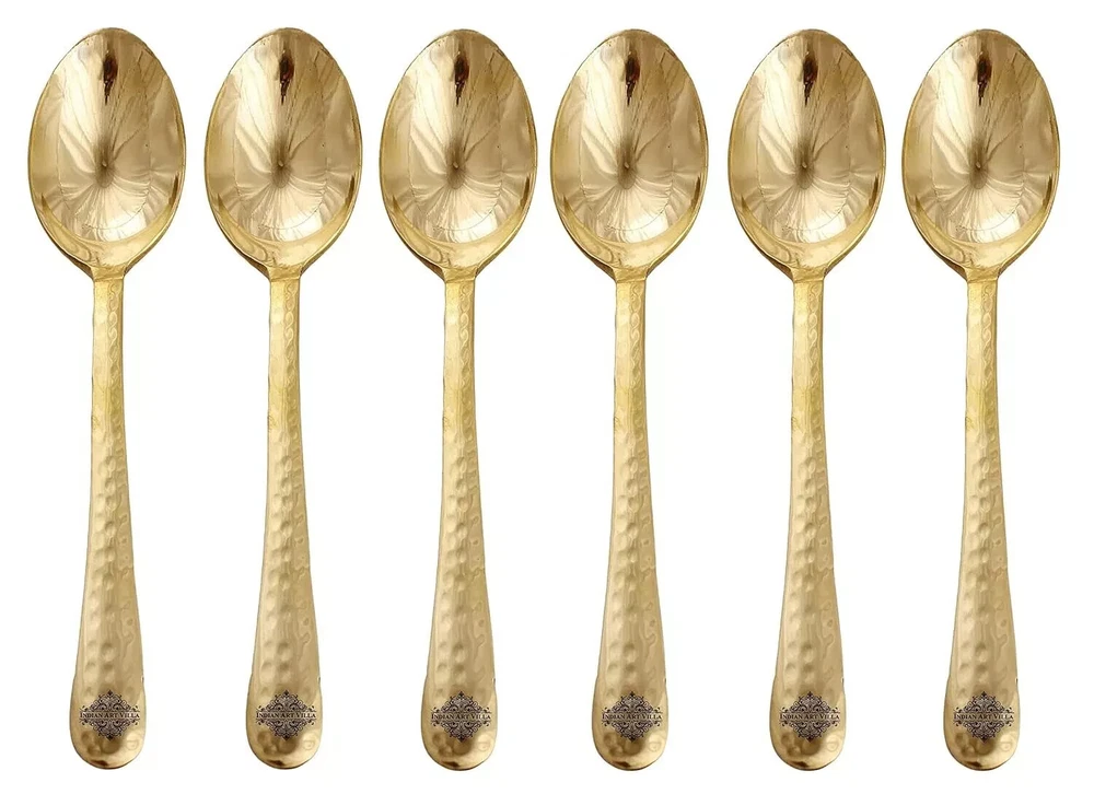 Brass Hammered Spoon, Serveware Tableware, Length 7" Inch, 6 Pieces, Gold Brass Hammered Set of 6 Serving Spoon, Material: Brass, Color: Gold, Length:- 7'' Inch, Weight: 264 Gram On the Occasion of Diwali, Christmas, Anniversary, Birthdays these items can be readily turned into a wonderful Gift Item. These items have antique elegant design that gives addition to you Home décor or can be use for the decoration of Restaurants, Bars. IAV Product have been Applauded by Patrons for their intricate design and Incomparable Craftsmanship