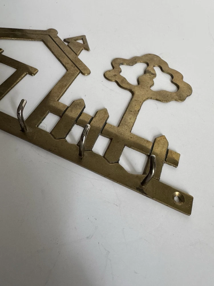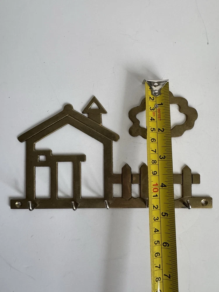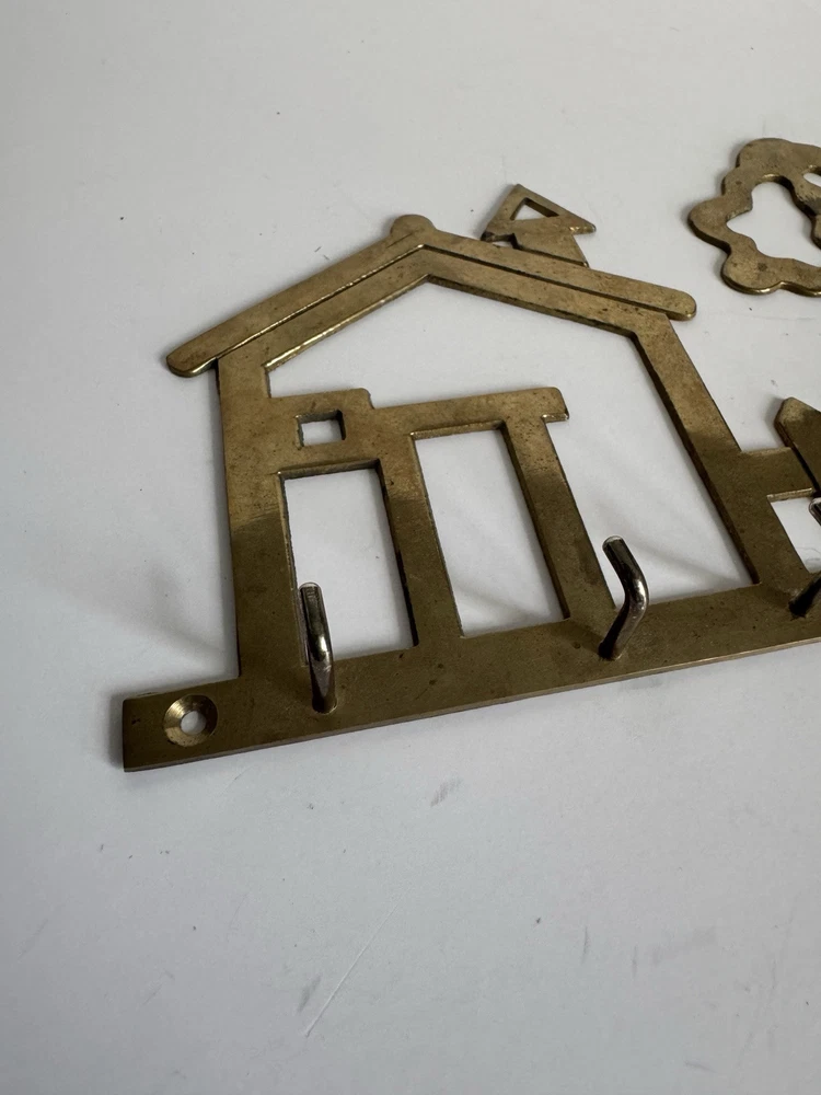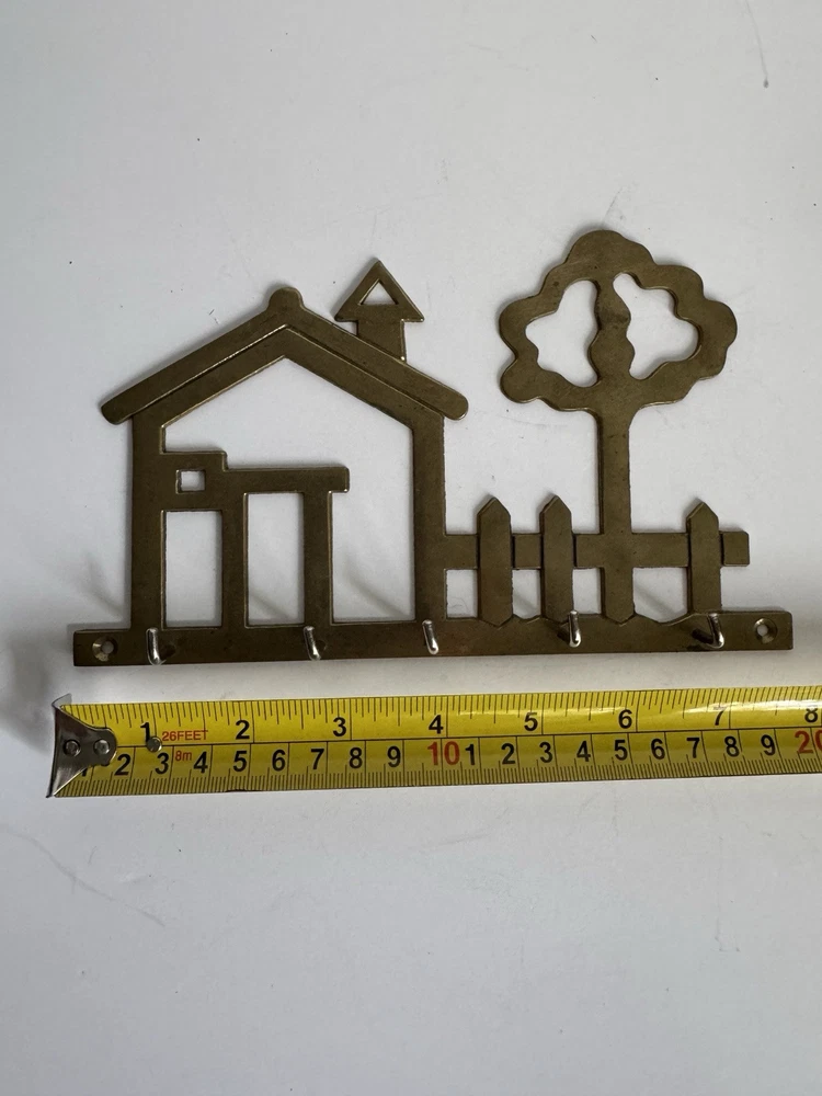 Brass Wall Key Holder House & Tree With 5 Hooks