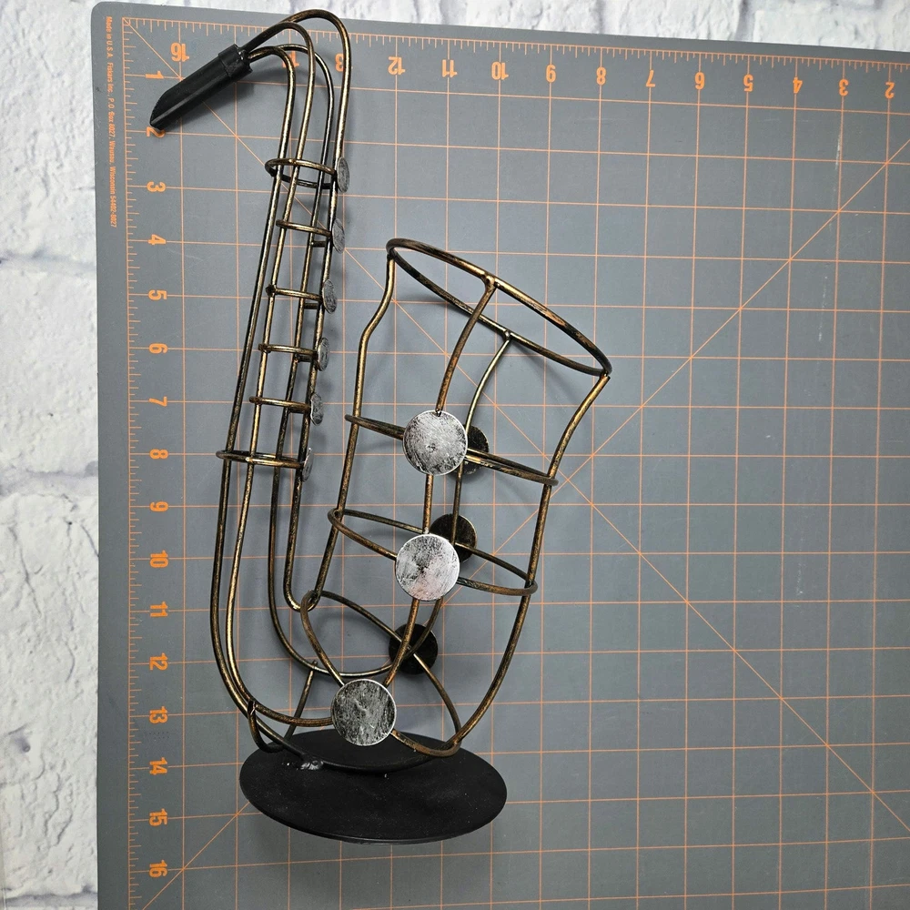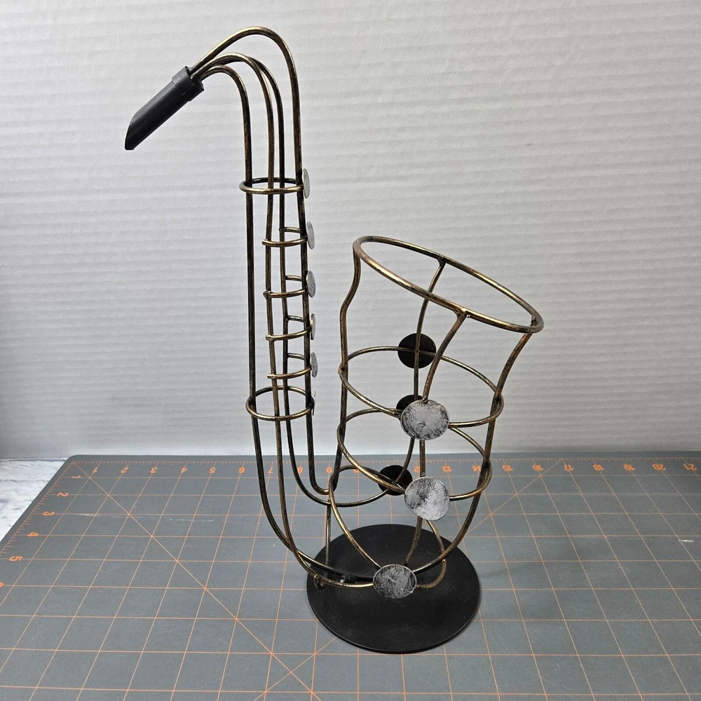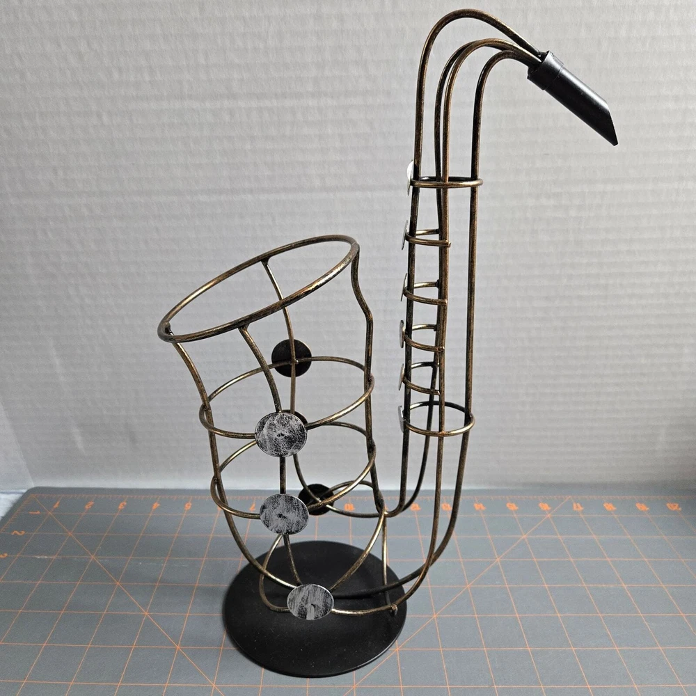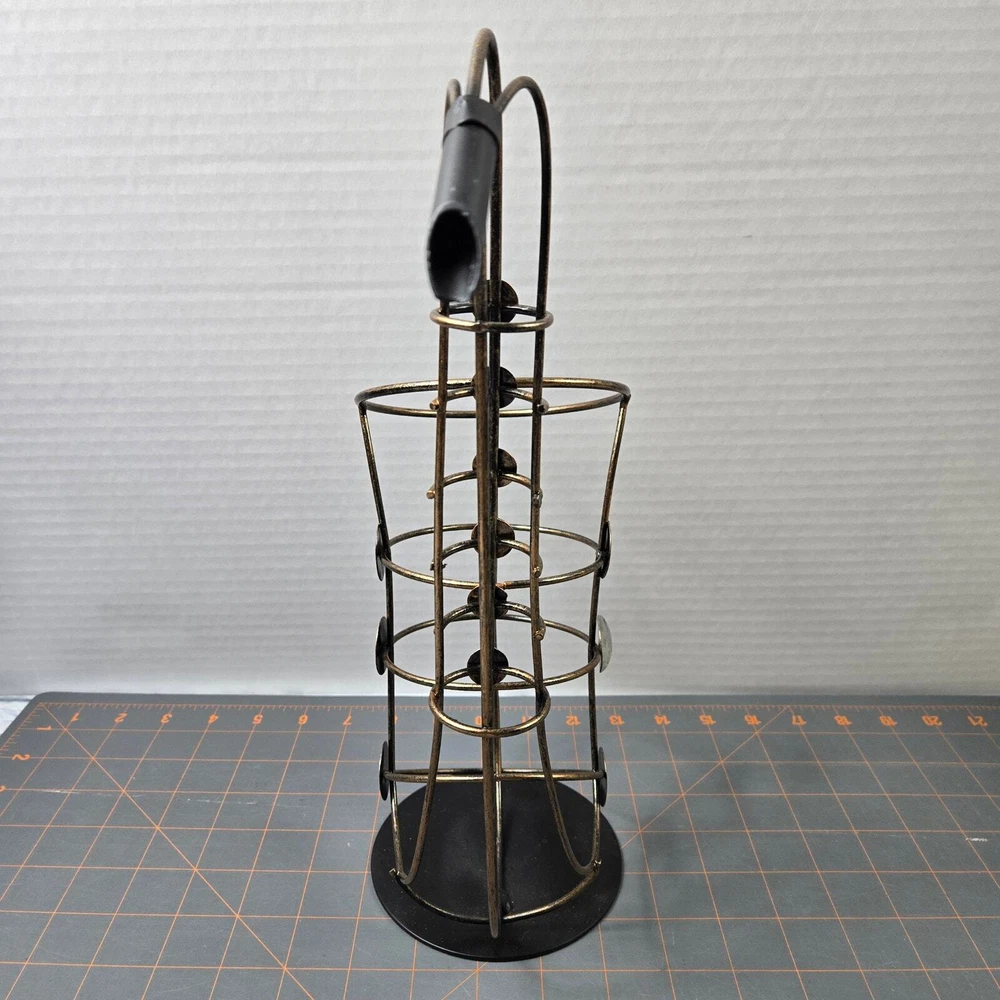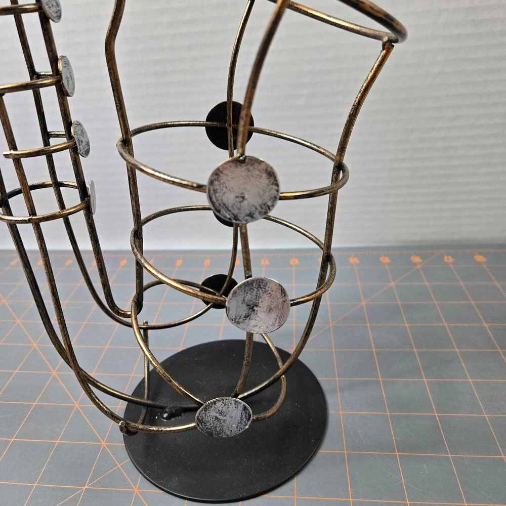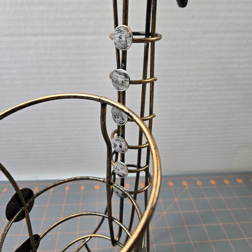Brassy gold-tone metal with silver-tone key accents and black base Approximately 15" tall Very good pre-owned condition