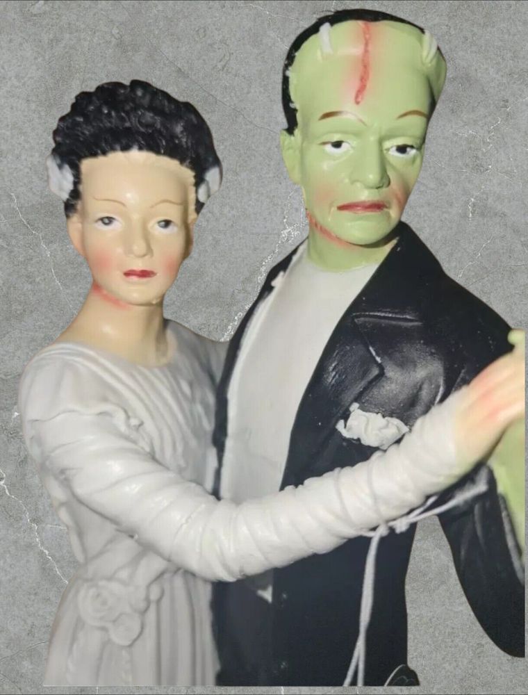 Add a touch of Gothic Halloween to your home with this vintage/retro Halloween Frankenstein with Bride Dance statue. Made of high-quality resin and hand-painted, this medium-sized statue stands at 12 inches tall and 4 1/2 inches wide. The statue features Frankenstein and his bride in a dance pose, perfect for any Halloween occasion. This Halloween decor is perfect for any room and can be displayed on a tabletop or as a free-standing statue. The multicolor statue is part of the Classic Horror product line and is sure to add a spooky touch to your home. No additional parts are required, making it easy to display. Get ready to celebrate Halloween with this unique and high-quality statue. If you would like to see more items like this one, please visit our ebay store by clicking the following link: Cocos Modern Living | eBay Store * RETURNS - Customer Satisfaction is important to us. Good communication is crucial for ebay sales. PRIOR to feedback, notify EZ Sales of any concerns using eBay messaging. Item must be returned in its original condition, with tags if applicable. BUYERS are responsible for return postage. Should the wrong item be shipped, EZ Sales will gladly refund the entire amount including return shipping.