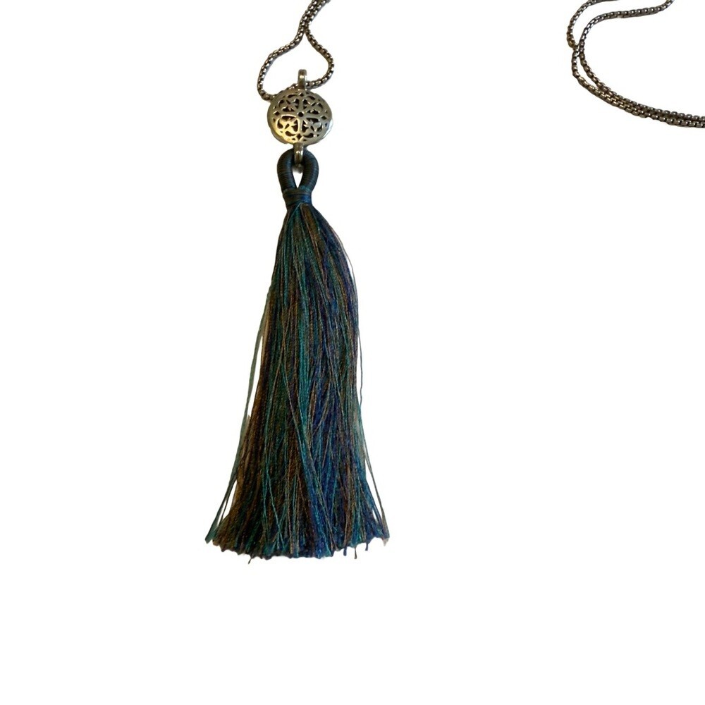 Brighton Jewelry Ferrara Tassel Necklace 19” chain Multi color tassel with silver adjustable chain Pre-Loved -Excellent condition
