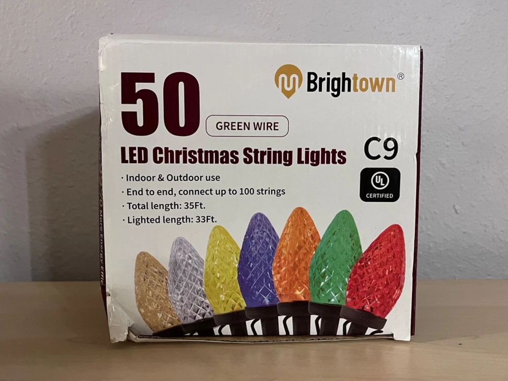 - Brightown 50 ct C9 LED Multicolored Faceted Steady Lit Christmas Lights 35ft NEW - BRAND NEW IN ORIGINAL PACKAGING - SHIPS OUT IMMEDIATELY - REPUTABLE SELLER : CHECK MY FEEDBACK!!! Please reference pictures for description From smoke free / pet free home YOU PICK THE SHIPPING OPTION. GROUND ADVANTAGE IS THE CHEAPEST IF YOU REQUIRE EXPEDITED SHIPPING OR EXTRA PACKAGING PLEASE SELECT ONE OF THE LISTED EXPEDITED SHIPPING SERVICES. THANK YOU!