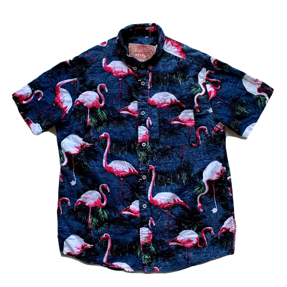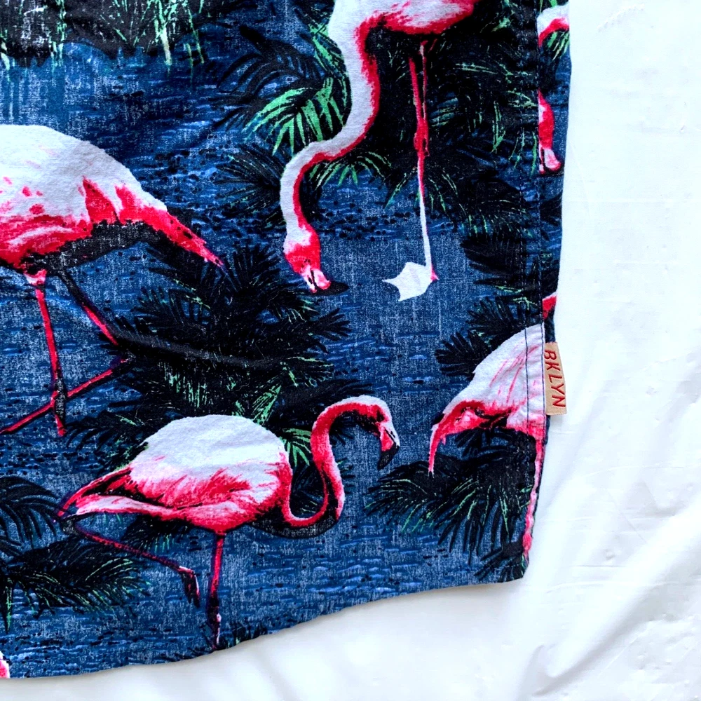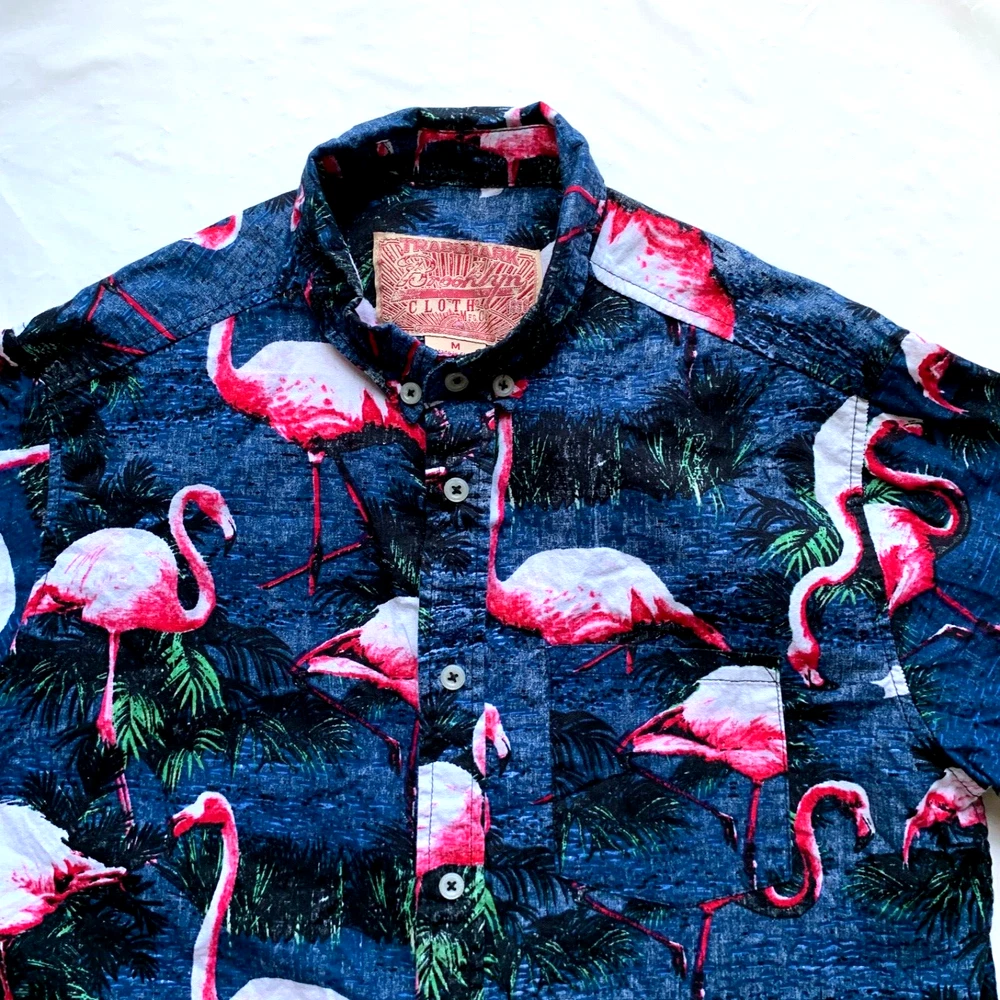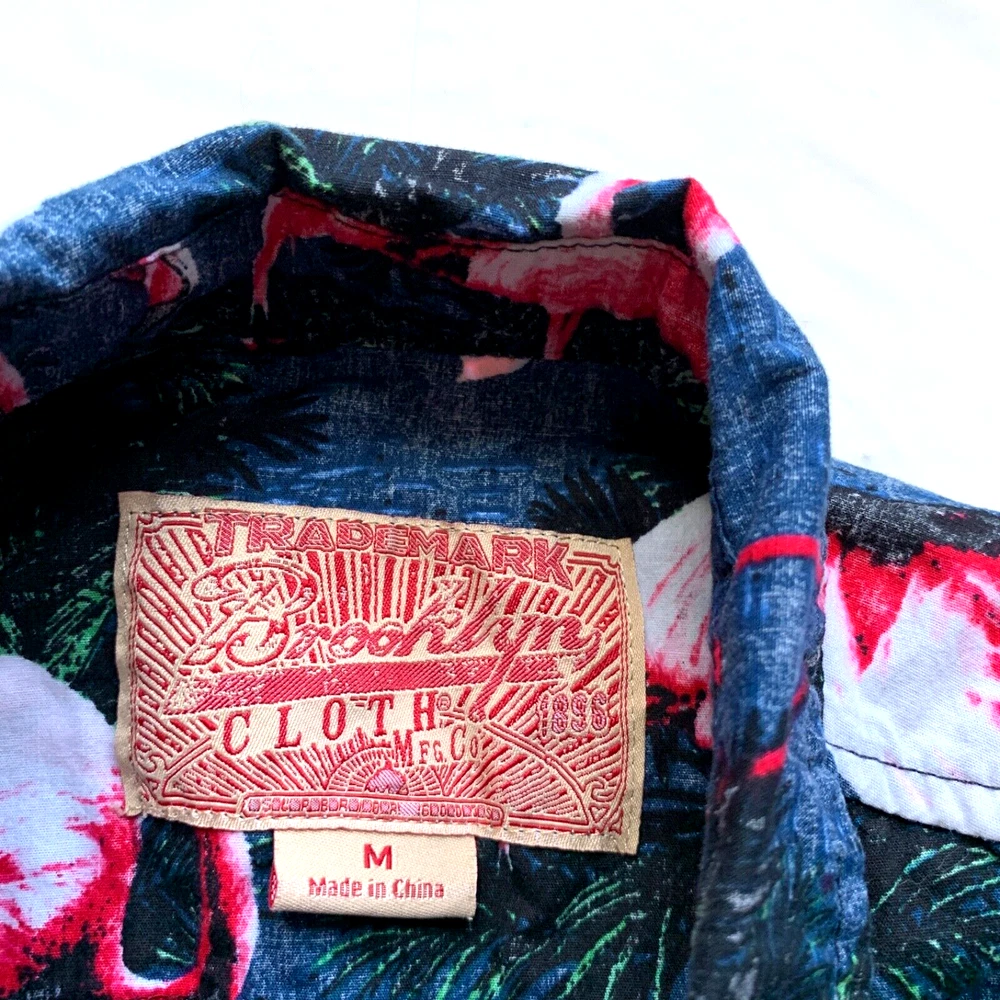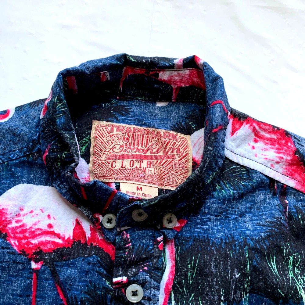 Brooklyn Cloth Hawaiian Shirt Mens M Flamingo Print Button Down Beach Island NEW Condition: New without tag. Excellent condition. Please see all photos for condition and measurements. Please let us know if you have any questions. Thanks for shopping with us. Important Note: Please compare our measurement photos to your favorite garments to ensure correct sizing and fit. We store our items in a pet and smoke free environment Coupons cannot be combined with offers.