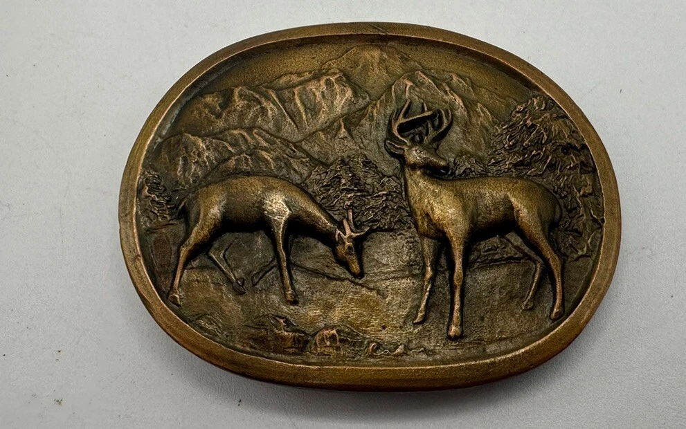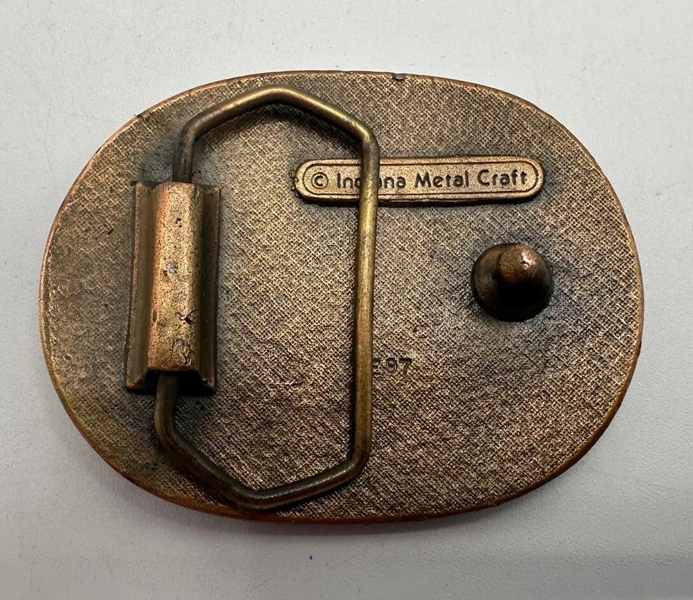 This vintage buckle from Indiana Metal Craft features a beautiful deer design, perfect for any animal lover. The bronze color adds a touch of rustic charm to any outfit. This original piece from the 1970s is a must-have for collectors and fans of vintage accessories. Crafted from high-quality metal, this belt buckle is durable and built to last. The adult unisex design makes it a versatile addition to any wardrobe. Made in the United States, this original piece is a true collector's item. Add it to your collection today!