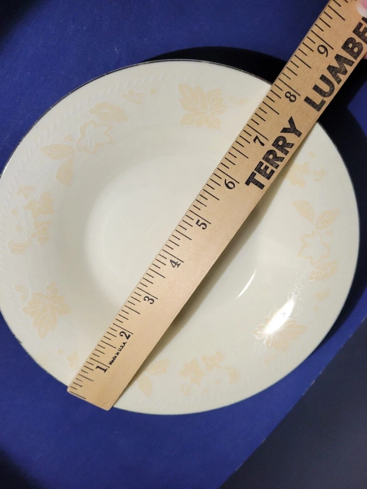 Salad/soup bowl Budlet China Ivory pattern 8" round bowl Used condition. No cracks or chips. Utensil marks and some of silver trim is worn off. Discontinued pattern I do offer combined shipping. Sometimes I can offer a better deal than what ebay calculates. Please ask questions prior to bidding. I offer free local pick up in the Cuyahoga Falls, Ohio area. 00