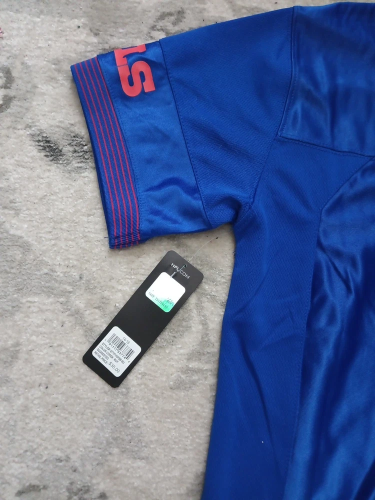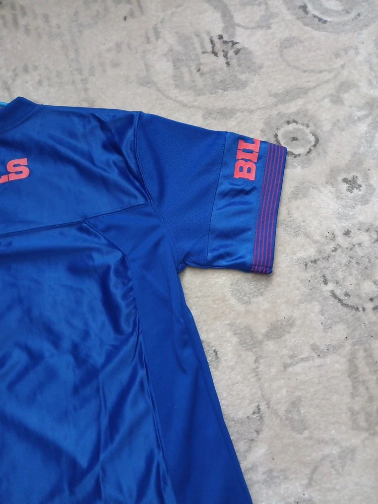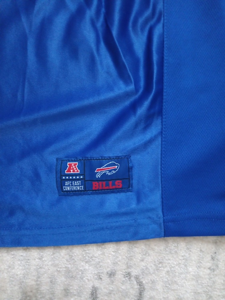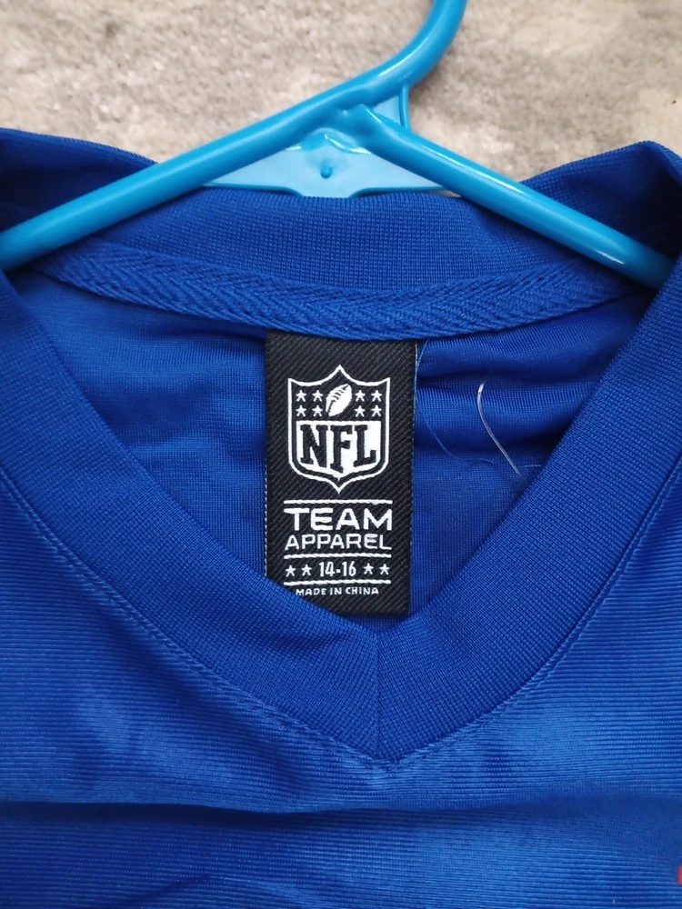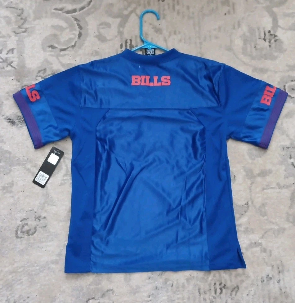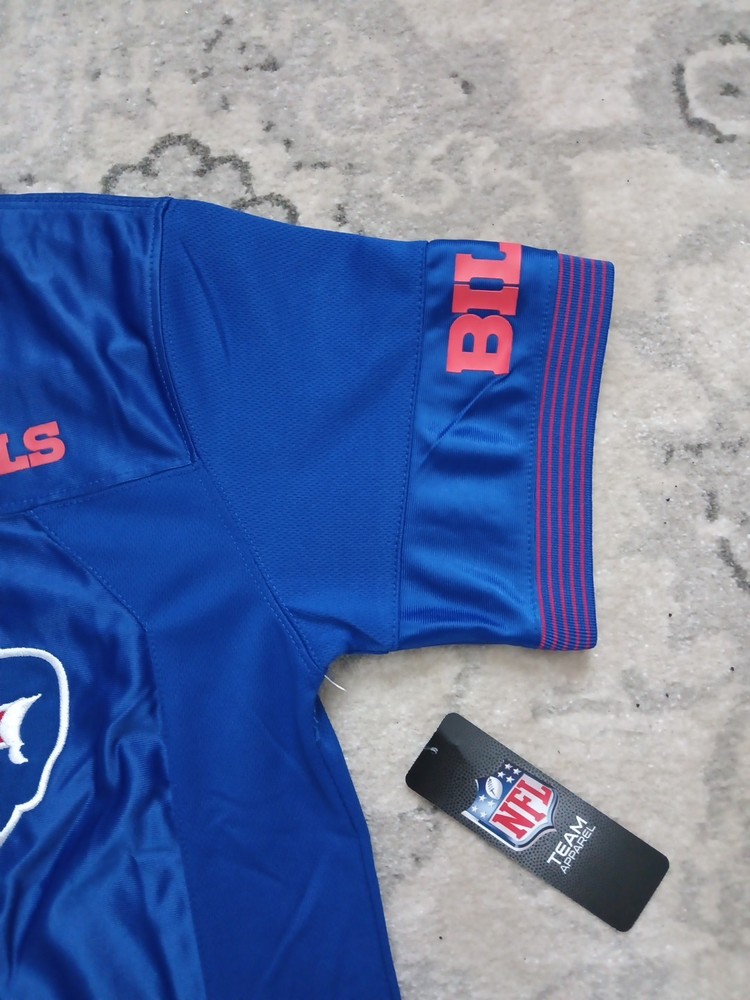 The Buffalo Bills NFL Team Apparel Large Logo Football Jersey in size Youth 14-16 is an officially licensed product featuring the iconic Buffalo Bills team logo. This jersey is perfect for young fans of the National Football League who want to show their support for the Buffalo Bills. Made by NFL Team Apparel, this blue jersey is designed specifically for football enthusiasts looking to represent their favorite team on game day or during casual wear. Perfect for any young fan wanting to sport their team pride in style.