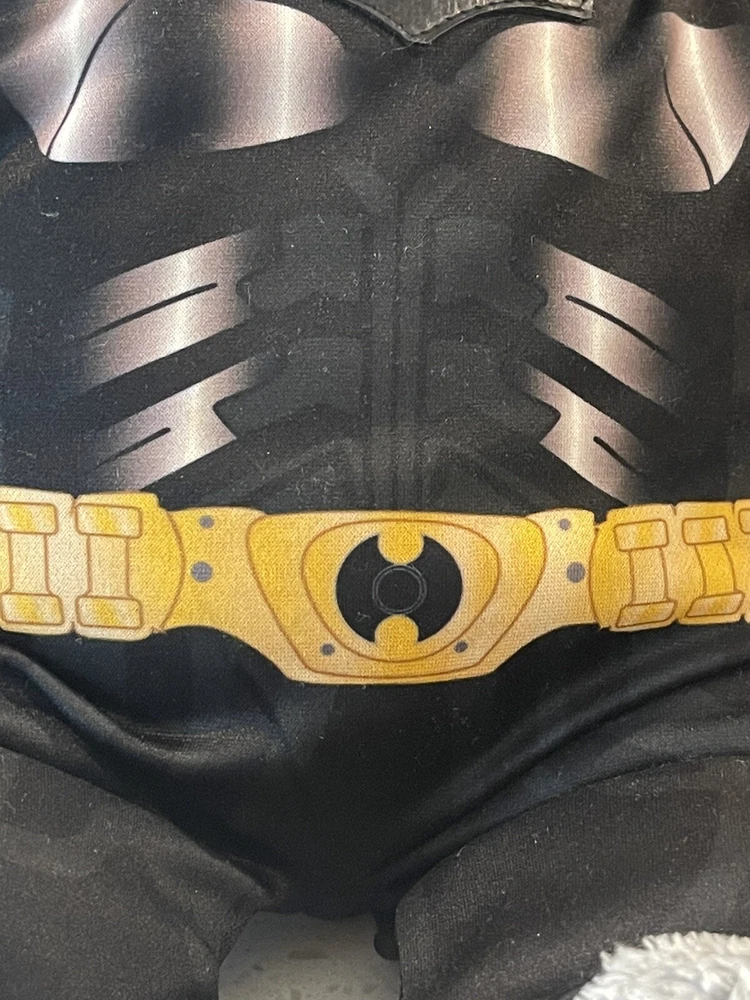 This Build-A-Bear Workshop plush bear is the perfect addition to any superhero fan's collection. With a gray color and 17" size, this retired 2016 Batman Teddy Bear Stuffed Plush is a must-have for any occasion. The bear comes without packaging and is sold as a single unit. Featuring black eyes and a DC Comics collection, this plush bear is made of high-quality materials and weighs 13 oz. It is suitable for ages 3+ and is perfect for any antique or vintage collector. This bear is not personalized and is not signed, but it is still a great addition to any collection. This comes with the bear and the Batman suit. From a smoke-free home.
