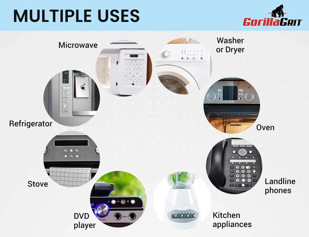 Bump Dots for Visually Impaired 106PC 106 Piece Set, Assortment of Colors Product Details Manufacturer: GorillaGrit Hardware Brand: GorillaGrit Item Weight: 1.44 ounces Product Dimensions: 5.5 x 3.5 x 0.6 inches Item model number: TACBMP-104PC-31 Is Discontinued By Manufacturer: No Color: Assortment of Colors Shape: Various Material Type: Polyurethane Size: 106 Piece Set Manufacturer Part Number: TACBMP-104PC-31 Color: Assortment of Colors Size: 106 Piece Set Material: Polyurethane Brand: GorillaGrit Shape: Various 106-PIECE COMBO PACK: Small bumpers in different shapes, sizes and colors to cater to all your needs. Package includes Circle, Square, Spherical, Recessed, Jelly Button shaped bumpers TACTILE MARKING: Provide easy identification of items for those with low vision. These Bump Dots allows a variety of uses for tactile marking of everyday items such as remote control, computer keyboards, telephones, appliance controls, buttons and switches Self-stick Labelers are perfect for in homes or offices aiding those with glaucoma, blind, sighted, macular degeneration, visual impairment CUSHIONING & DAMPENING: These premium bumper pads are also great for cabinets, doors, drawers, picture frames and glass table tops - provides cushioning to prevent damage from accidental slamming, banging and closing Made of molded polyurethane Premium Quality Assorted Bumper Pads Combo Pack! Bump Dots are Perfect for tactile marking of everyday items such as microwave, remote controls, computer keyboards, telephone keypads, dryer, washer, copiers, printers, small appliance controls and switches for the visual impaired! Soft self-adhesive protectors will quickly and easily attach to any surface. 106-Piece Combo Pack Contains: * 20 PCs Circle (Black) - 9.5mm width x 3.2mm thick * 22 PCs Spherical (Grey) - 11.1mm width x 5mm thick * 24 PCs Jelly Button (Clear) - 9.5mm width x 4.6mm thick * 20 PCs Square (Brown) - 12.7mm width x 3mm thick * 20 PCs Recessed (White) - 12.7mm width x 3.5mm thick Made in USA Application Instructions: - Make sure the target application surface is clean, dry and free of debris. - Clean the surface with a mild solvent such as alcohol if needed - Grasp bumper on the sides without touching the adhesive -Press bumper firmly into place on application surface - NOTE: Bumper cannot be repositioned without ruining adhesive.