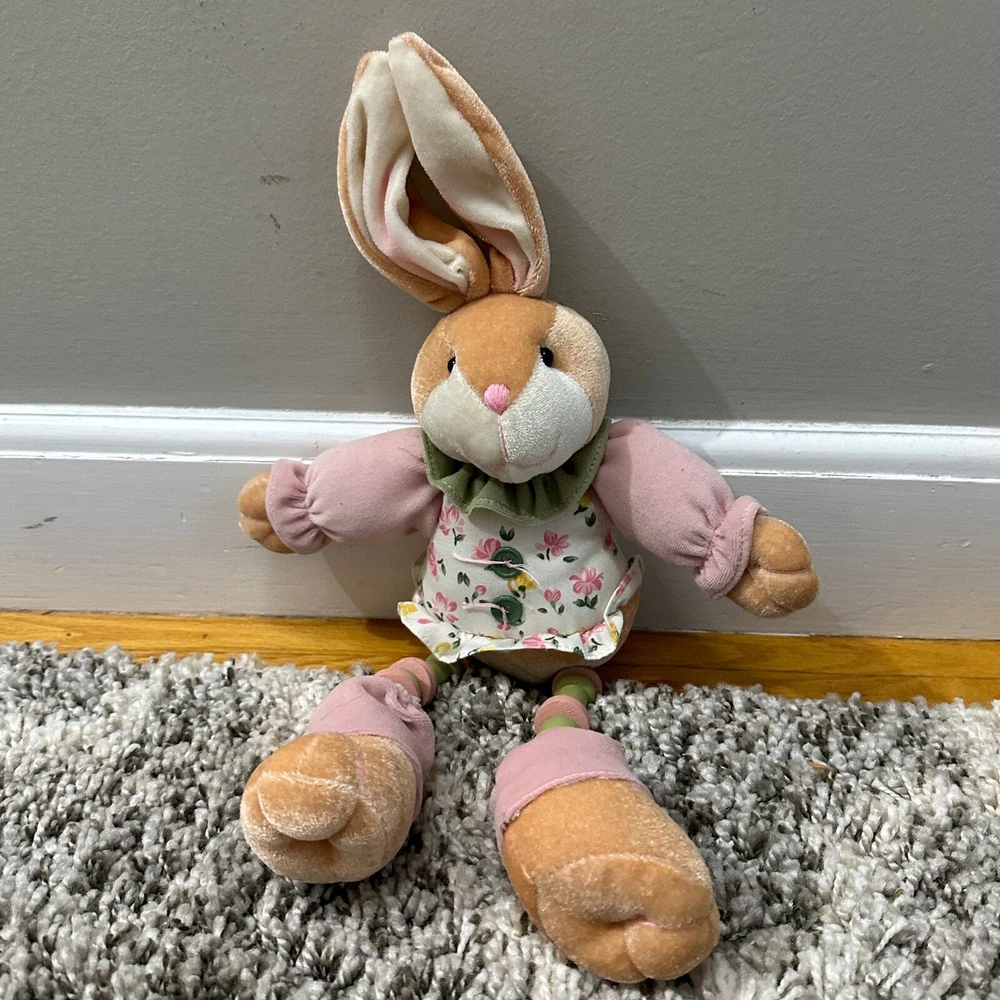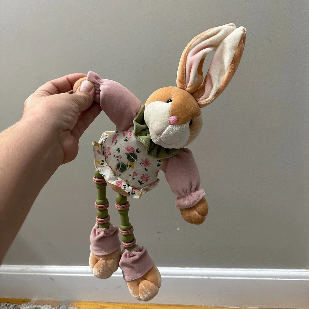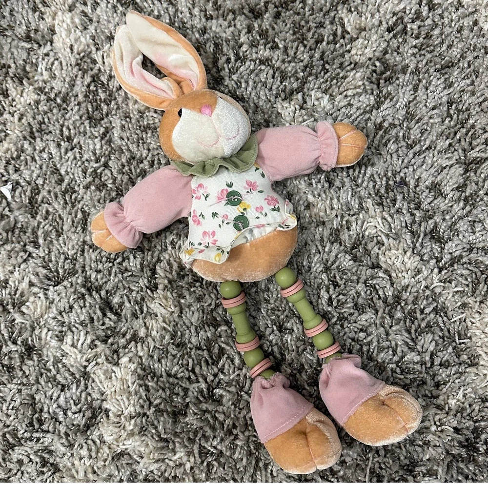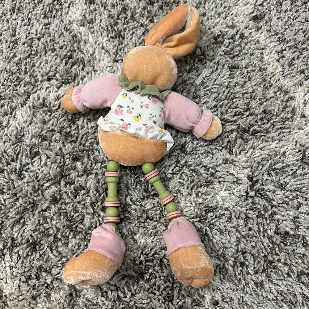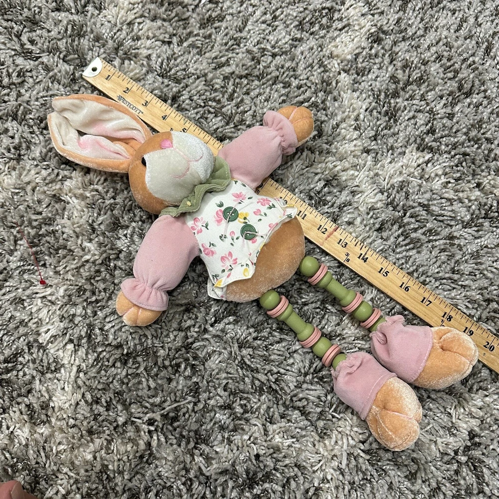 Bunny Rabbit Doll Shelf Sitter Easter Decor Toy Stuffed Animal Plush CUTE 20" This guy is so sweet! I don't think he is handmade--but there is no tag. Might need propping up to sit on a shelf. Wire in ears. Excellent condition, no flaws or notable wear. Lots of adorable details!