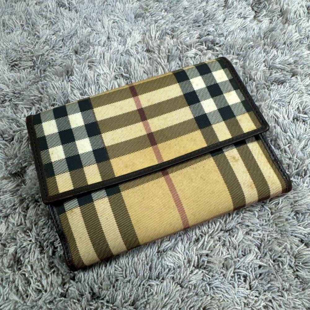Burberry Bifold Wallet Card Case Nova check Button closure Accessory Used