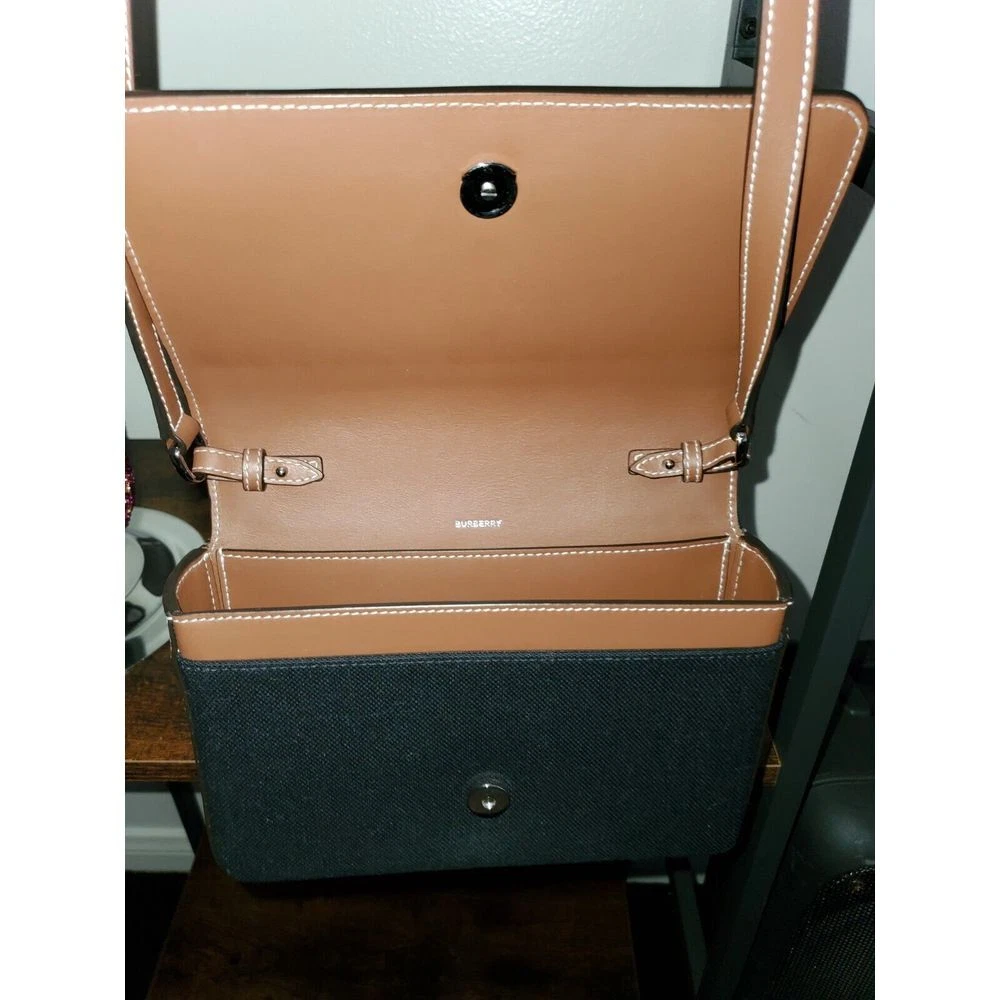 Elevate your everyday style with this sophisticated Burberry crossbody bag. Featuring the iconic Burberry logo on durable black canvas with luxurious brown leather trim. Perfect for both casual outings and formal occasions, this versatile bag adds a touch of British elegance to any ensemble. Ideal for shopping, brunches, or evening events where you want to travel light yet stay stylish. Keywords: Burberry bag, designer crossbody, canvas bag, leather trim, luxury handbag, black Burberry, British fashion, designer accessory, classic bag, Burberry London