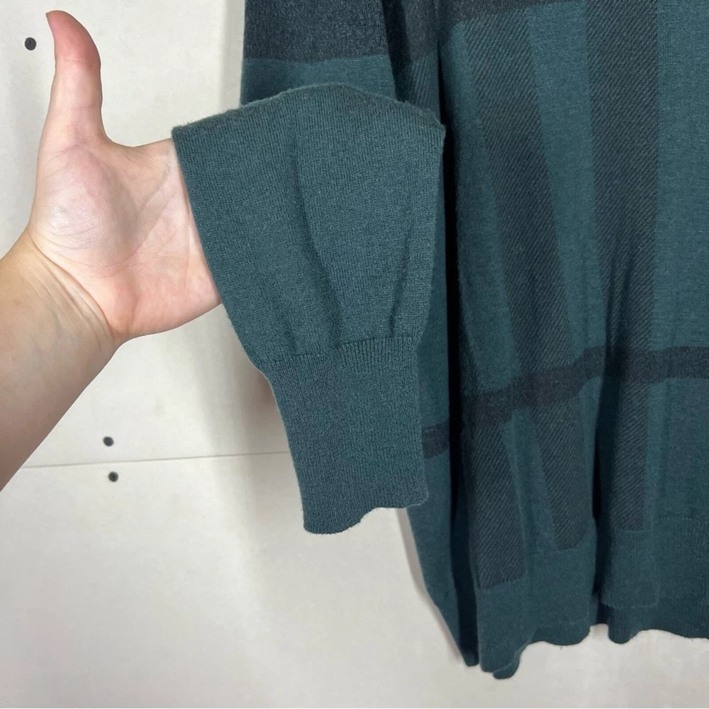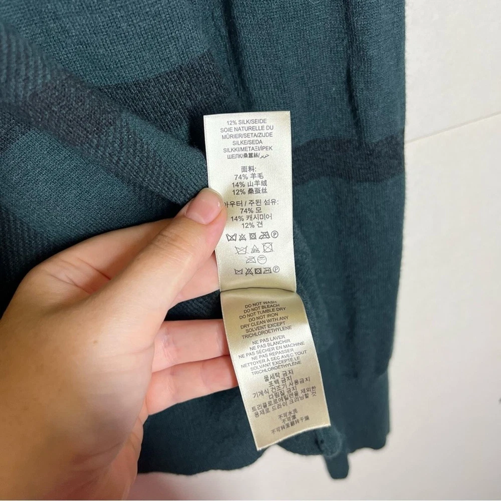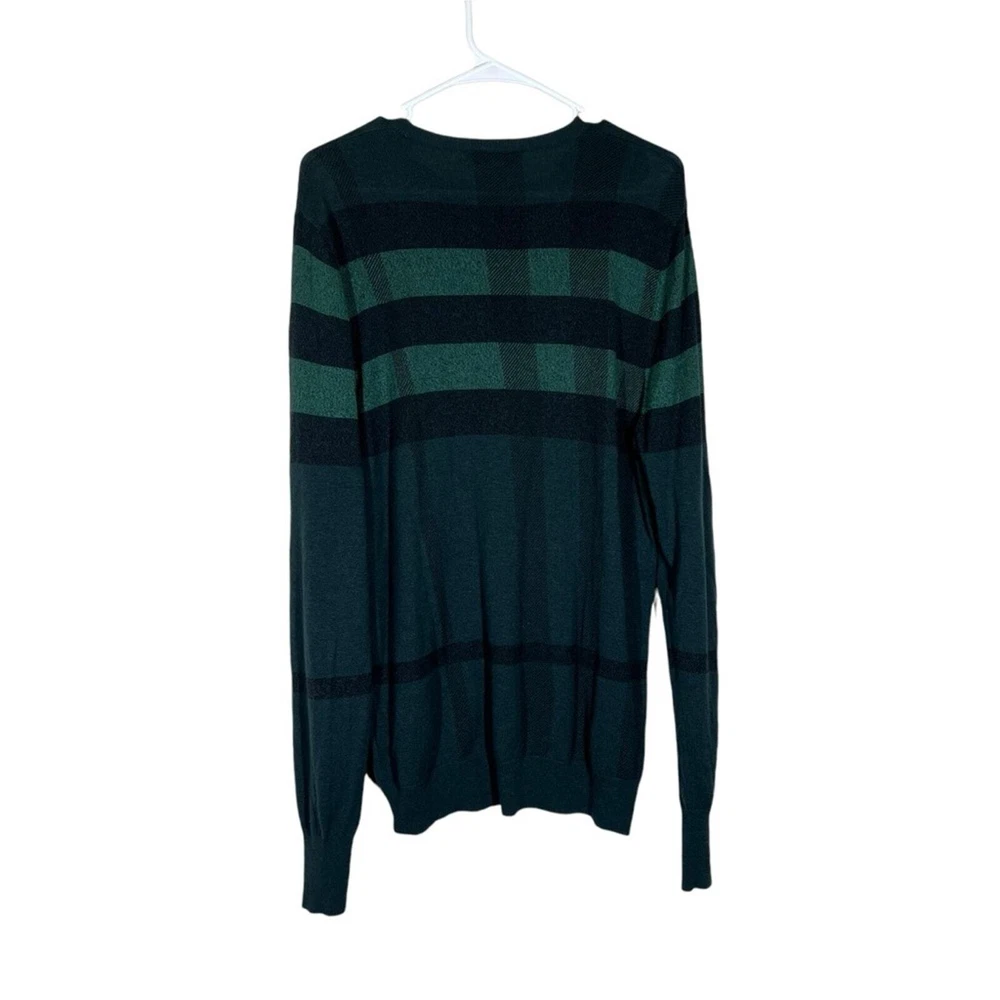 Burberry London Wool/Cashmere/Silk Blend Plaid Sweater Size Large Color: Green Wool, Cashmere, & Silk Blend Long sleeve Lightweight Crewneck No rips holes or stains Approximate measurements laying flat Chest 20.5” Length 29”
