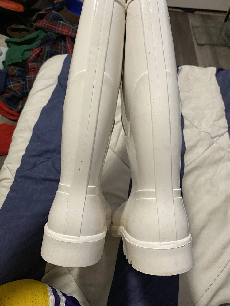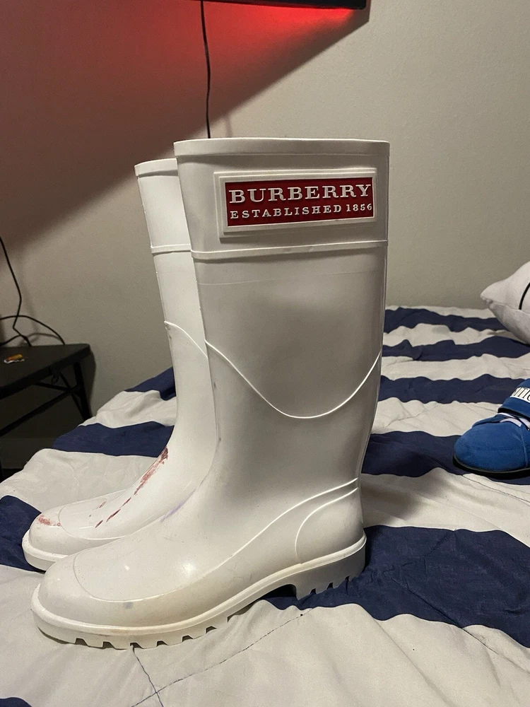 Burberry Rainboots White Women's Size 9.5 40 Rubber Shoes Italy Designer