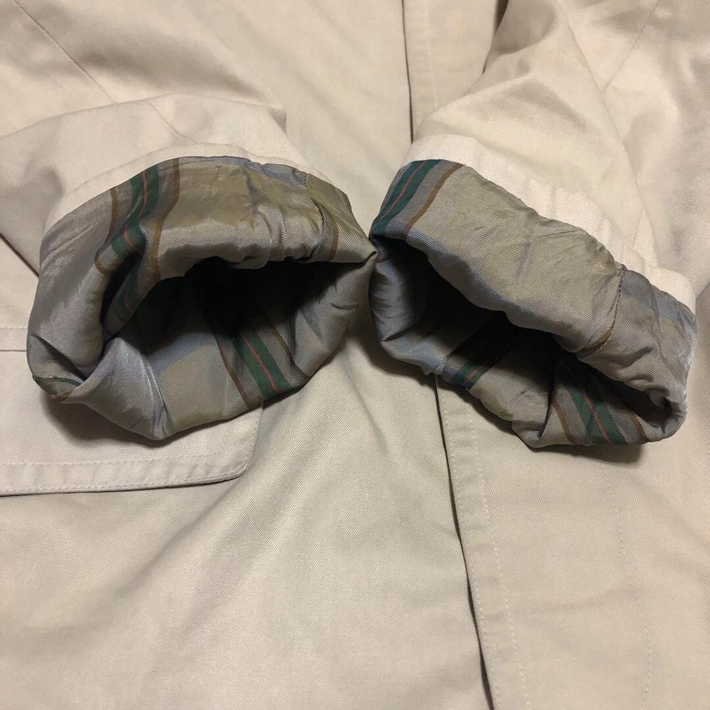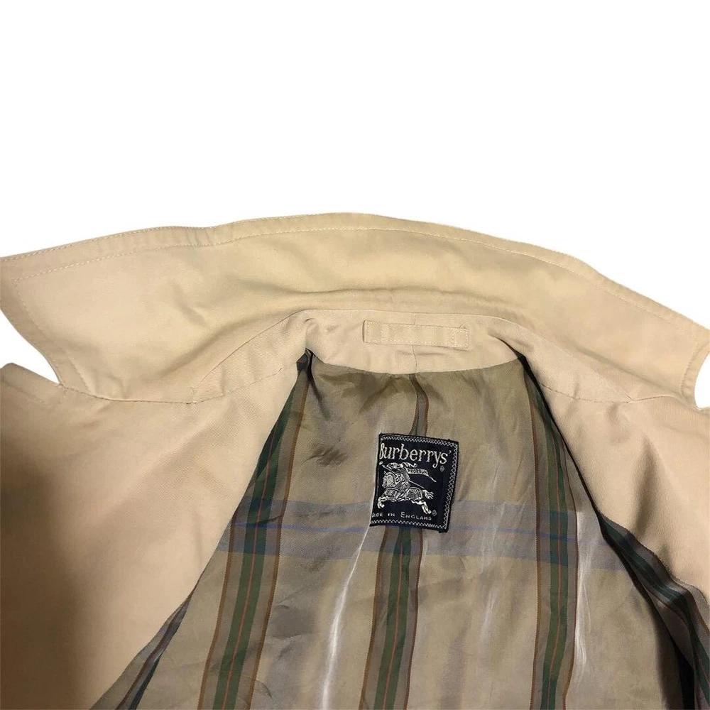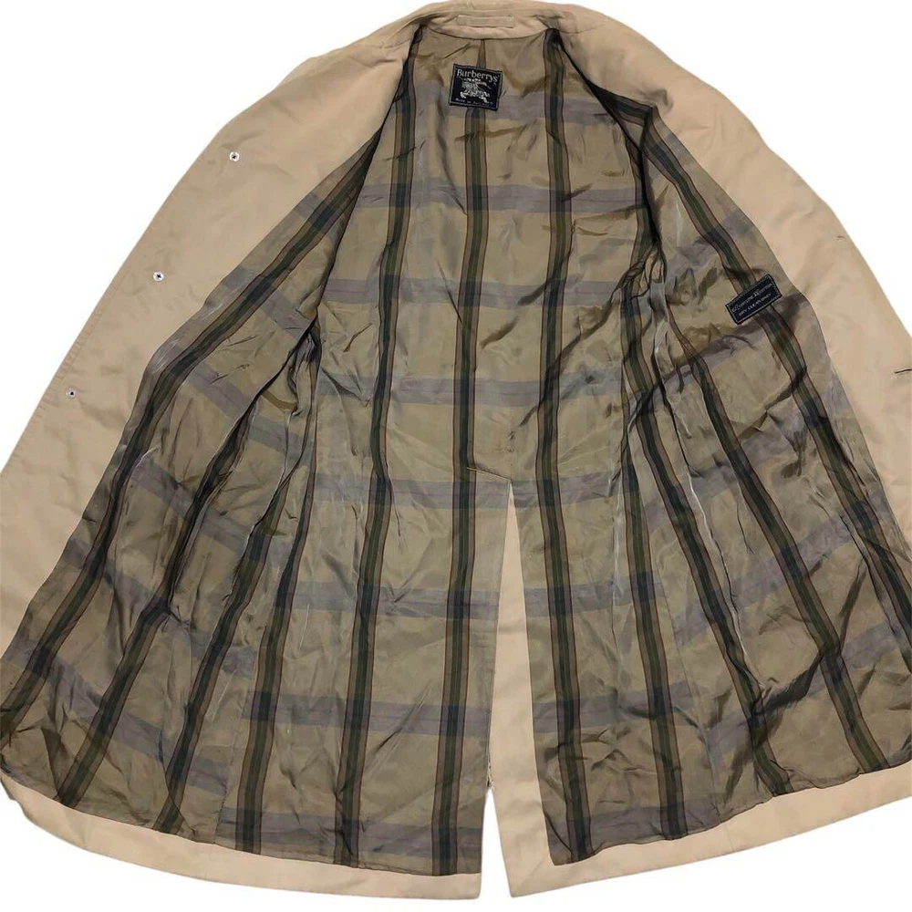 Size: Free Vintage: No Handmade: No Model: NA Jacket/Coat Length: 40.1 in Color: Beige Insulation Material: NA Features: Belted, Collared Closure: Button Country/Region of Manufacture: United Kingdom Fabric Type: NA Outer Shell Material: Polyester Theme: NA Collar Style: NA gtin13: Does not apply Personalize: No Fit: Slim Season: Fall, Spring, Winter Product Line: NA Accents: Button Lining Material: NA Performance/Activity: Walking Department: Men Brand: Burberry UPC: Does not apply Garment Care: NA Size Type: Regular MPN: NA Style: Trench Coat Warmth Weight: NA Pattern: Check Chest Size: 40.1 in Occasion: Business, Casual, Travel Type: Coat