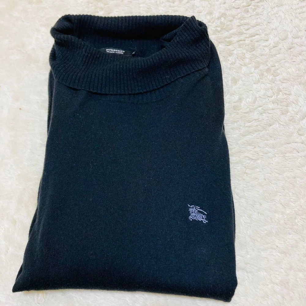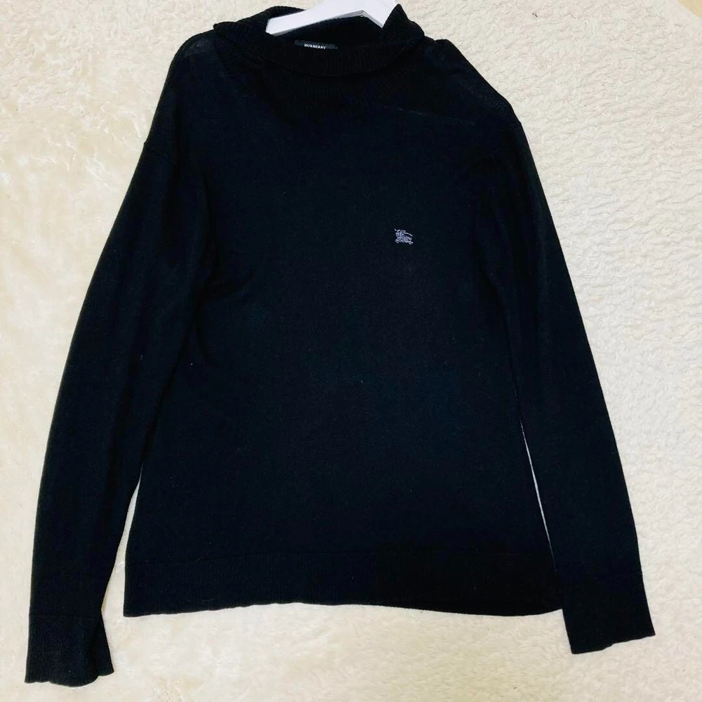 Burberry Turtleneck High Neck Knit Sweater Cashmere Black Men Size 2/S-M Used