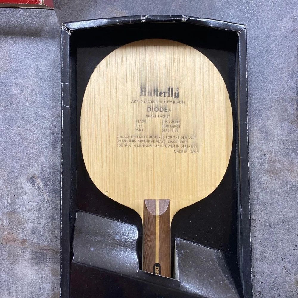Butterfly Diode ST Table Tennis Blade, Discontinued, Lightweight, 84g Key Features **Product Description:** - Brand: Butterfly - Product Type: Table Tennis Blade - Model: Diode ST **Detailed Features:** - Highly regarded for chopping play - Unique wood grain and feel due to manual production processes - Lightweight and in good condition for a discontinued model **Condition of the Item:** - Long-term storage item - No major cracks or critical damage - Minor scratches from use and storage - Please refer to the photos for condition details **Visual Attributes:** - Comes with the original box (Diode ST box) **Item Specifics:** - Brand: Butterfly - Model: Diode ST - Condition: Used - Type: Table Tennis Blade - Features: Chopping, Lightweight, Vintage, Rare Specifications Brand Butterfly Country Japan Product Description For US Buyers The shipping fee is not profit — it covers both delivery cost and import duty in advance. No extra charges at delivery, so you can purchase with confidence. Payment Information • We use eBay-managed payments. Major credit/debit cards, Apple Pay, Google Pay, and PayPal are accepted. • Marketplace taxes such as VAT/GST may be collected by eBay at checkout, depending on the destination. • We ship only to your eBay-registered address. Off-platform transactions are not accepted. Immediate payment required (optional). Shipping & Handling • Dispatch within 5-10 business days after payment confirmation. Free / Calculated shipping with tracking. • Routing changes or operational issues may require substitution with an equivalent service while maintaining tracking and delivery standards. • Items containing lithium batteries are subject to air transport regulations, which may affect the shipping method and delivery time. • Remote area surcharges (e.g., DHL/UPS) may apply; we will contact you if needed. Peak-season or customs inspections may cause delays. • If a parcel is returned due to an incorrect address, refusal, or unpaid duties, reshipping costs or actual expenses may be deducted from refunds. Return Policy • Returns are accepted within 30 days of delivery for initial defects only. Items must be returned in the same condition as received. • For cross-border returns other than initial defects, international return shipping is the buyer's responsibility. • Serial numbers/tamper labels and item photos are recorded. Any alteration or parts removal voids eligibility. • Taxes and duties paid to authorities or collected by eBay may not be refundable by the seller. Customs & Duties • For U.S. buyers: Import duties and taxes are already included in the shipping fee . No additional customs charges will be collected upon delivery. • Import duties, VAT, GST, or handling fees are determined by each country's customs regulations and eBay's regional tax policy. In some cases, these fees are already collected by eBay at checkout, while in others they may be charged upon delivery — or not charged at all, depending on local rules. We do not undervalue or mark items as gifts. • Customs regulations and de minimis thresholds vary by country and may change over time. Please check with your local customs office if you’d like more details. • If a shipment is returned due to unpaid duties or refusal, shipping and handling costs may be deducted from refunds.