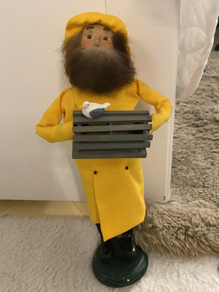 This Byers Choice doll is a charming addition to any collection. The 1999 Nautical Carolers Lobster Fisherman doll features a yellow lobster trap and a seagull, perfect for all occasions. Handmade with mixed materials, this doll was manufactured in the United States and is a unique piece from the 1990-1999 time period. The brand, Byers Choice, is well-known for their quality collectibles and this doll is no exception. Add it to your holiday or seasonal collection today.