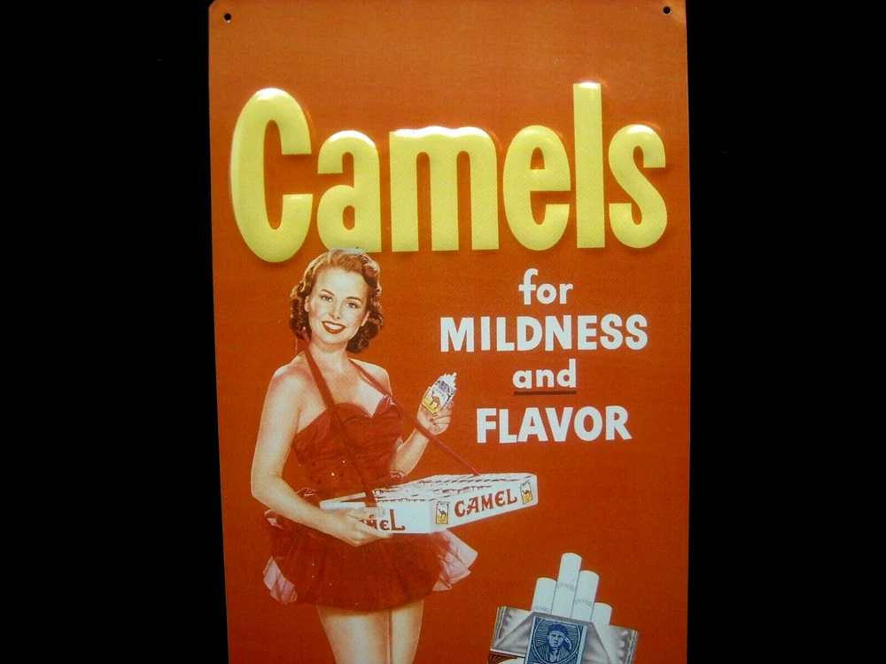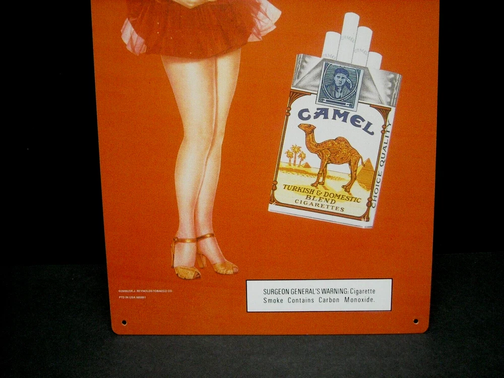 HELLO, YOU ARE LOOKING AT A CAMEL CIGARETTES PIN UP GIRL CAMELS FOR MILDNESS AND FLAVOR METAL WALL DISPLAY SIGN. 19.5'' x 9'' R.J. REYNOLDS TOBACCO CO. 2006 WOULD MAKE A NICE DISPLAY . GREAT FOR THAT MAN CAVE, GARAGE OR THAT SPECIAL ROOM. SEE ALL PHOTOS, THANKS FOR LOOKING WILL BE LISTING SEVERAL CAMEL DISPLAYS THAT I HAVE COLLECTED OVER THE YEARS AS TIME PERMITS. SHIPPING THRU USPS OR FEDEX SELLER'S CHOICE AND NO INTERNATIONAL SHIPPING PLEASE LOOK AT PICTURES AS PART OF THE COMPLETE DESCRIPTION AND ASK QUESTIONS BEFORE BUYING. . ANY QUESTIONS JUST ASK AND SORRY ALL SALES ARE FINAL. THANKS FOR LOOKING AND GOOD BIDDING.. IF YOU HAVE AN ISSUE PLEASE CONTACT US BEFORE LEAVING FEEDBACK. PAYMENT WITHIN TWO DAYS AND SHIPPED TO A CONFIRMED ADDRESS. ALWAYS SHIP SAME DAY OR NEXT DAY WEEKENDS EXCLUDED. (((( NO INTERNATIONAL ))))