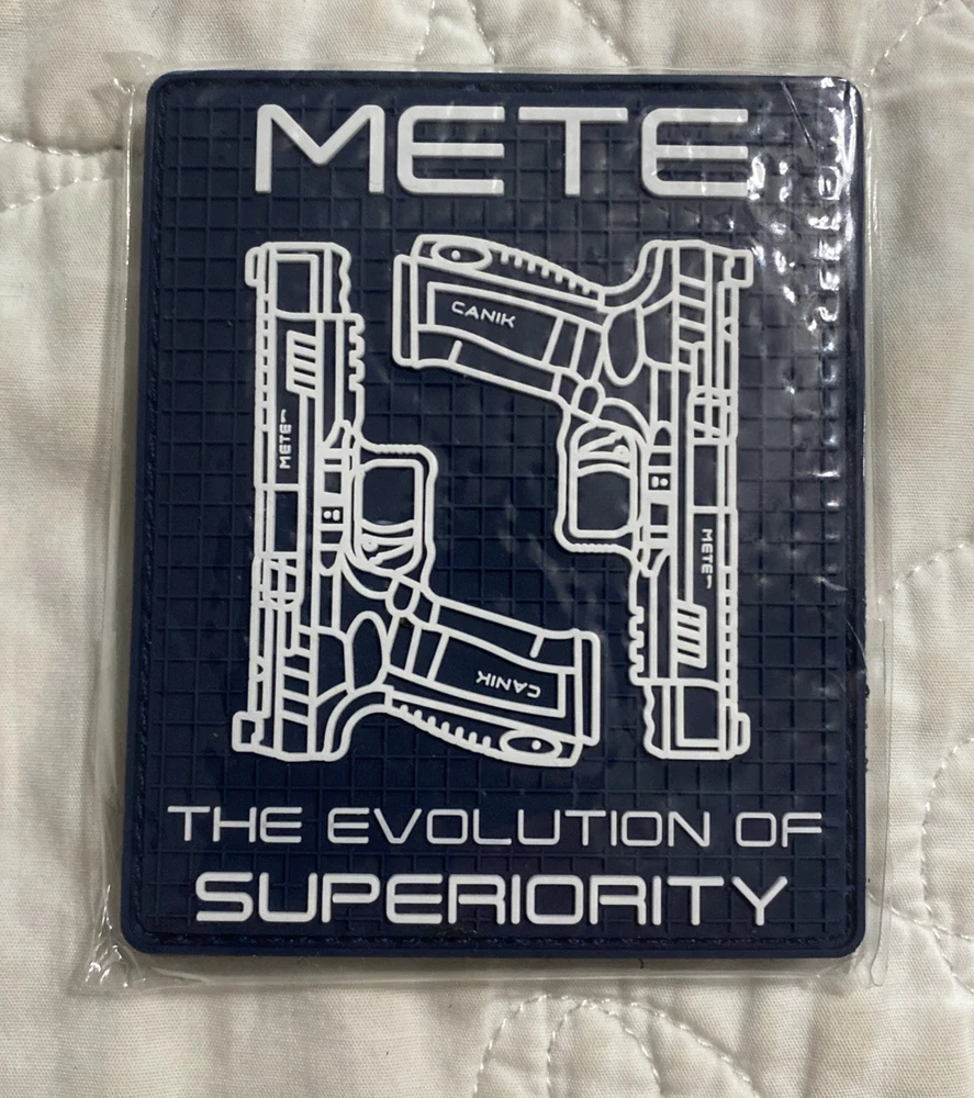 CANIK METE PISTOL "THE EVOLUTION OF SUPERIORITY" MORAL PATCH METE "THE EVOLUTION OF SUPERIORITY" Authentic CANIK Patch from a CANIK vendor Hook & Loop attachment 2.5" x 3.5" FREE SHIPPING