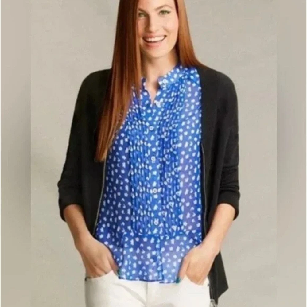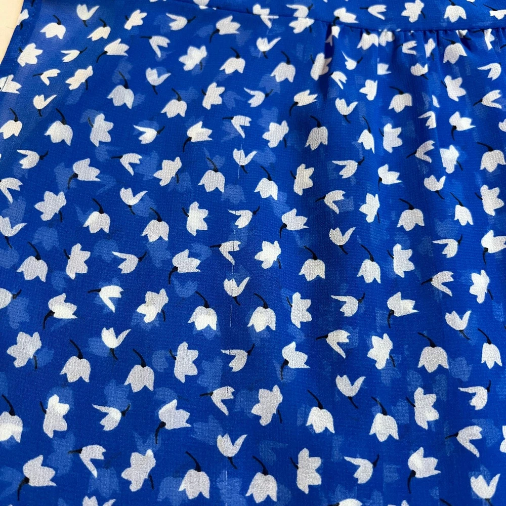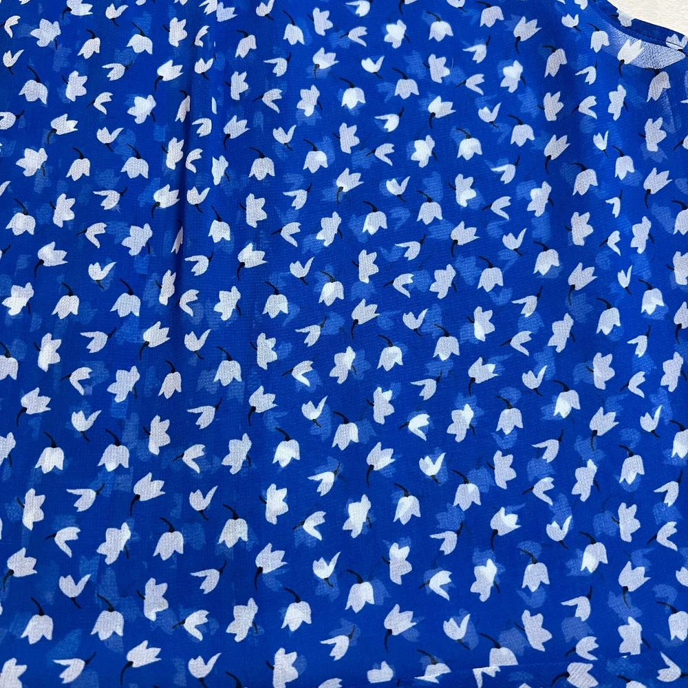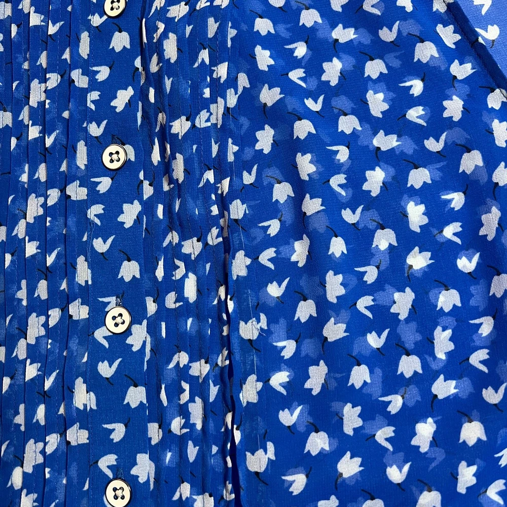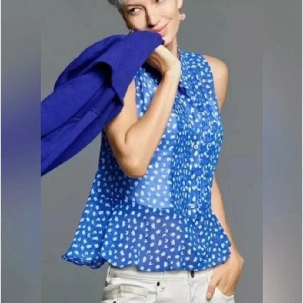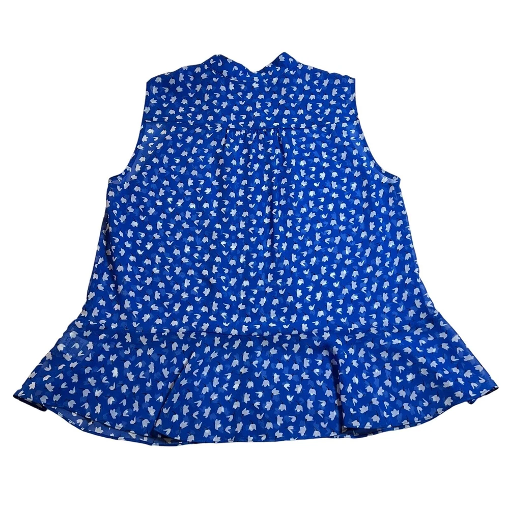CAbi Sleeveless Floral Print Button Down Peplum Blouse Size S Style # 5530 CONDITION: Pre-Owned. Gently Used Condition. FLAWS/ALTERATIONS: There are two long snags on the blouse. Please see the last pictures. COLOR: Electric Blue/White/Black SIZE: Women’s Size Small DETAILS: Sleeveless Semi sheer Floral print Button down Pintuck pleat detail Peplum Flowy MEASUREMENTS: Chest: 19.5" Full Length: 24" **All measurements are approximate and are taken flat** MATERIAL: 100% Polyester Bundle 2 OR MORE items to save more! Reasonable offers are welcomed! TAGS: Casual Comfy Spring Summer Travel Vacation Contemporary Maximalist Office Professional Career Resort