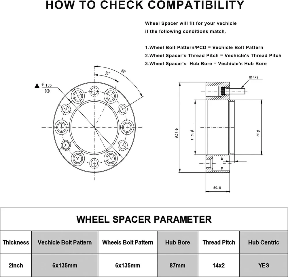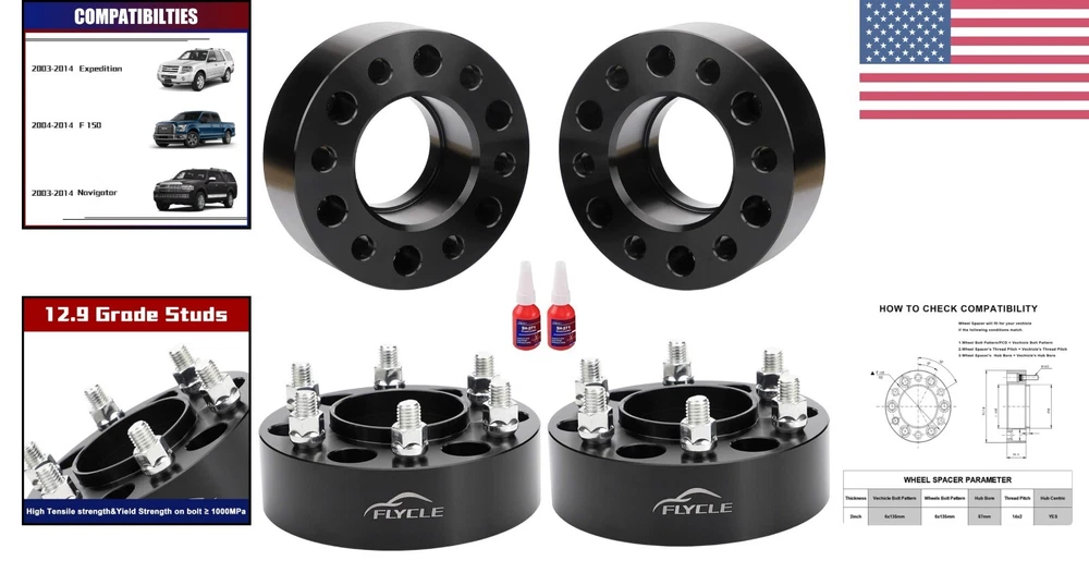 CNC Processed 2 Inch Wheel Spacer for 2003-2014 Navigator & Expedition ‹ › ‹ › ‹ › ‹ › ‹ › ‹ › ‹ › ‹ › ‹ › ‹ › CNC Processed 2 Inch Wheel Spacer Specifications: 2 inch (50mm) Thickness 6x135mm Vehicle Bolt Pattern 6x135mm Wheel Bolt Pattern 87.1mm Center Bore Hubcentric M14x2 Thread Pitch Recommended torque: 85-90 LBS Compatibility: 2004-2014 F150 2WD 4WD (Only fit 6 lug) 2003-2014 Navigator 2003-2014 Expedition 2005-2014 Mark LT Features: CNC processed for a tight fit with the hub Exclusive 12.9 grade screws for durability Forged 6061-T6 aluminum alloy for corrosion resistance Package Includes: 4pcs 6x135 to 6x135 hubcentric wheel spacers 2pcs high strength thread-locking User manual Why Choose Our Wheel Spacers: Enhance your vehicle's performance and appearance with our CNC Processed 2 Inch Wheel Spacers. Designed to increase tire clearance, fix brake clamp clearance issues, and allow for wider and larger tires, these spacers provide a more aggressive stance for your vehicle. The CNC processing ensures a secure fit, while the durable aluminum alloy construction offers corrosion resistance and longevity. Experience high-speed driving without noise or vibration, thanks to the heat-treated screws. Elevate your driving experience today! Shipping Free & Fast Shipping - We offer free shipping to most of the USA with a normal delivery time of 3-7 days. However, due to the current situation, additional delivery time (up to 3 weeks) may be required for some items. Alternative Carriers - We may use alternative carriers (e.g. USPS, FedEx, UPS, etc.) to ensure your package arrives safely and on time. Due to the use of multiple carriers, we are unable to provide a tracking number automatically. Handling Time - Orders are processed and shipped within 1-2 business days of receiving cleared payment. Shipping Restrictions - Shipping to Alaska, Hawaii, Puerto Rico, Guam, and other US territories may incur shipping charges or delivery restrictions. Please contact us before ordering, or your order can be refunded/cancelled. State Restrictions - There may be restrictions based on your state of purchase. For example, certain items may not be shipped to California due to state regulations. Contact for Tracking Updates - If you require tracking updates or have any concerns about the delivery of your order, please feel free to contact us, and we will be happy to assist you. Return 30-Day Hassle-Free Returns - We want you to be completely satisfied with your purchase. If you are not, you can return the item within 30 days of receiving it for a full refund or exchange. Easy Return Process - To start a return, simply contact us and we will provide you with a prepaid return shipping label and detailed instructions. Restocking Fee - There are no restocking fees for returns. However, the buyer is responsible for return shipping costs if the return is not due to a seller's error. Refund Processing Time - Refunds will be processed within 5 business days of receiving the returned item in its original condition. Payment We accept all major credit cards, PayPal, and Apple Pay for your convenience. Your payment information is secure and encrypted to ensure a safe and seamless transaction. Please complete your payment within 3 days of purchase to avoid any delays in shipping. Feedback Your feedback is extremely important to us. We strive to provide the best products and customer service possible. If you are satisfied with your purchase, please take a moment to leave us a positive review. If you have any concerns or issues with your order, please contact us before leaving negative feedback. We are committed to resolving any problems and ensuring your satisfaction. Contact Us If you have any questions or concerns, please feel free to reach out to our customer support team. You can contact us through the eBay messaging system. We are available Monday to Friday, 9:00 am to 5:00 pm EST, and we will do our best to respond to your inquiry within 24 hours. Thank you for supporting our small family business! Thread Size: M14x2 Items Included: Wheel Spacer,Studs,Hub Bore,User Manual,Thread-locking Placement on Vehicle: Wheel Spacers 6x135 Material: Aluminum,CNC Processed Aluminum,Forged 6061-T6 Aluminum Alloy Features: Hubcentric,Heat-treated Screws,Corrosion Resistance,Durability,Hubcentric Design,Heat-treated Hardened Screws,No Breakage,No Peeling,No Noise,No Vibration,Greater Corrosion Resistance Finish: Not Set Brand: Unbranded Number in Pack: 4 Type: Wheel Spacer Spacer Thickness: 2 inch Hub Bore: 87.1 mm Manufacturer Part Number: Not Set OE/OEM Part Number: Not Set Inside Diameter: Not Set Outside Diameter: Not Set Centering: Not Set Color: Black Bolt Pattern: Not Set Interchange Part Number: Not Set Manufacturer Warranty: Not Set Superseded Part Number: Not Set Vintage Part: Not Set Performance Part: Not Set Universal Fitment: Not Set