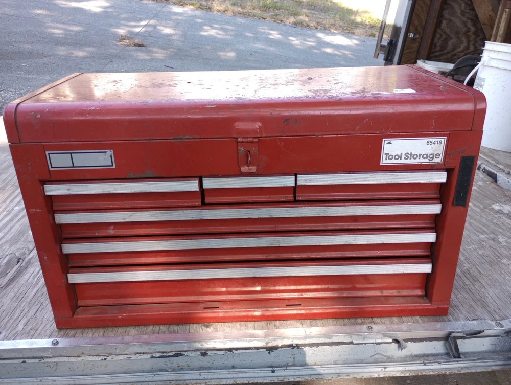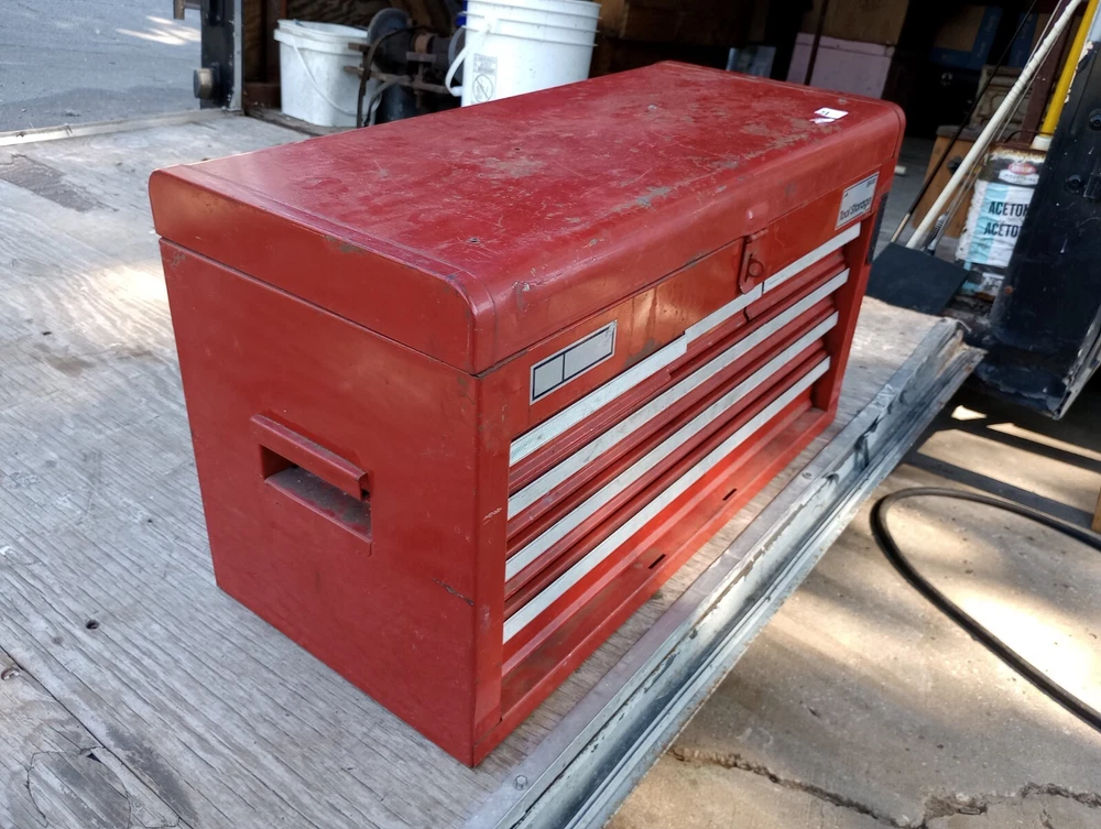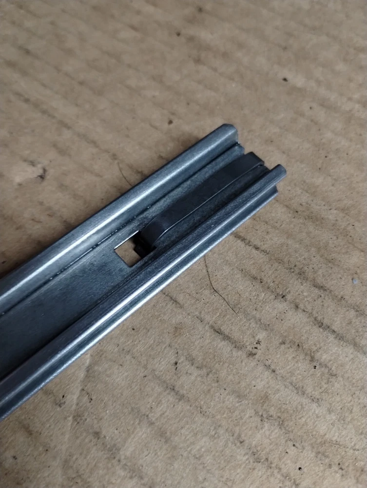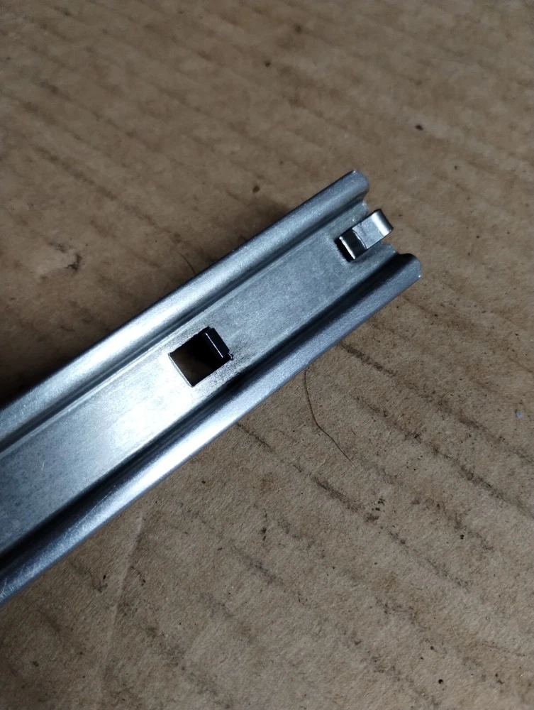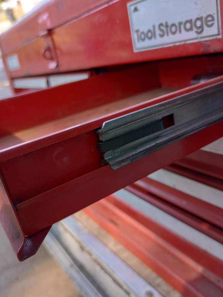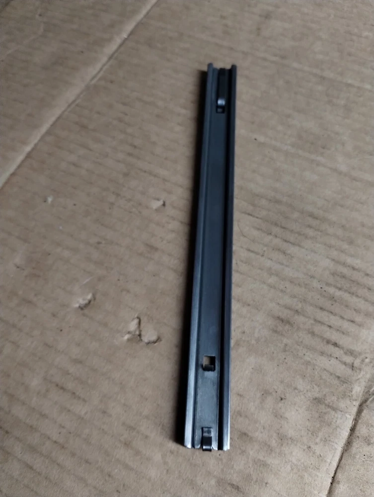 Please note, all tool box slides look very similar in design, please use the measurements and pictures I have provided to make sure you purchase the correct item. Craftsman tool box slide, rail, track with clips. Please look closely at the clips on this one, craftsman makes two different slides both the same size, but with different clips. Please make sure this is the one you need. Good condition, model number is in last pic, may fit others, please compare pictures and size before purchasing 10.5" long, 7/8" high and 3/8" thick (inside groove is 9/32") please measure before you buy, normal used condition, this is vintage so will show wear, oil, dirt, discoloration, rust, etc, but still in usable condition. Picture is a stock picture. please compare sizes and pics before buying. No returns if you buy the wrong item. #C44 inventory