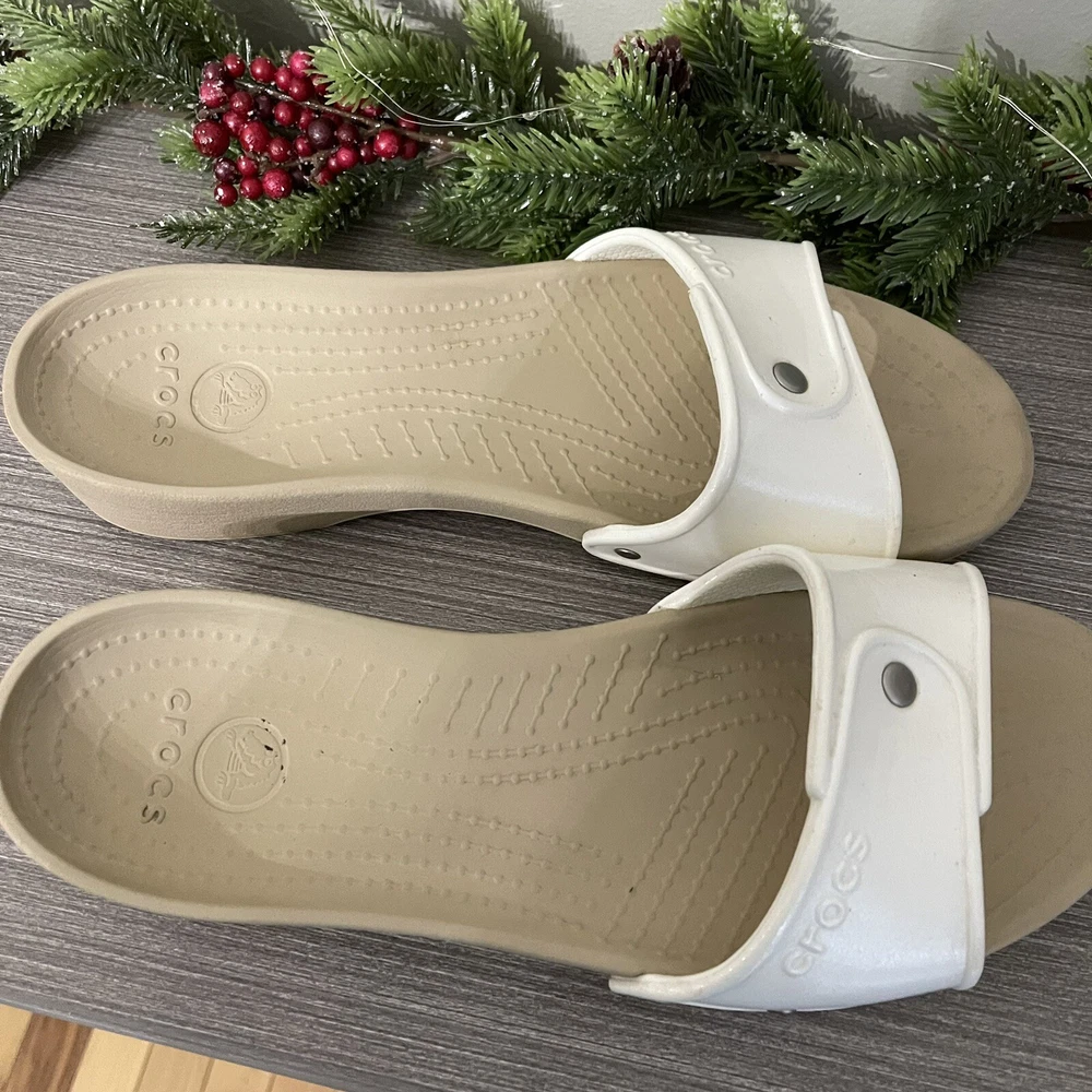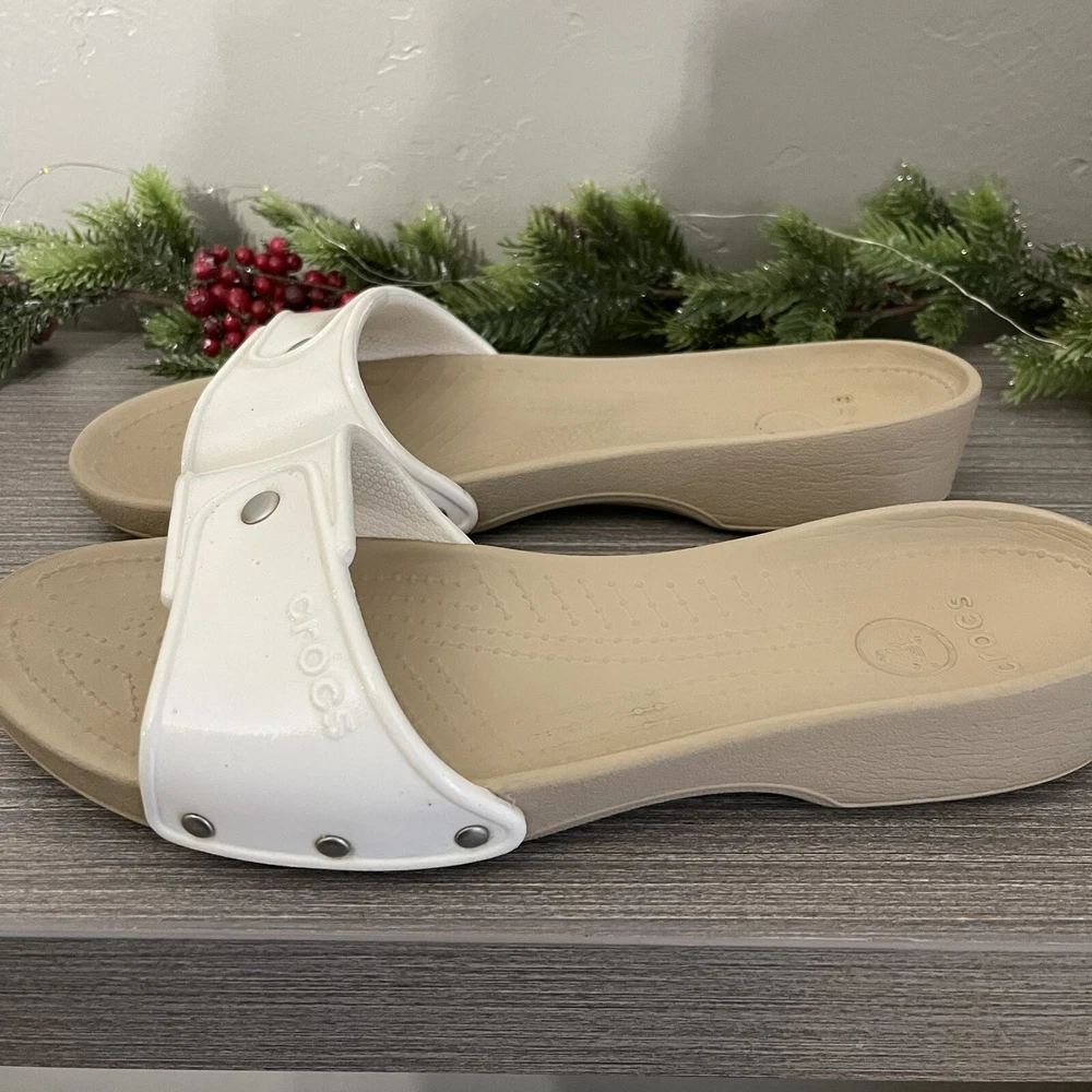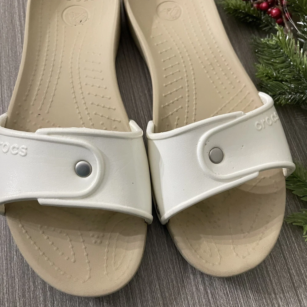 CROCS Cobbler Womens Slides Slip On Open White Sandal Shoe Size 10