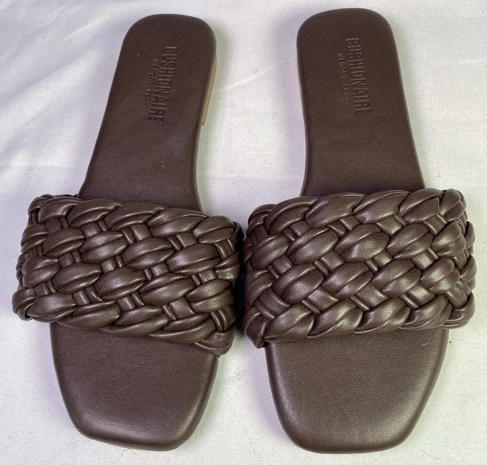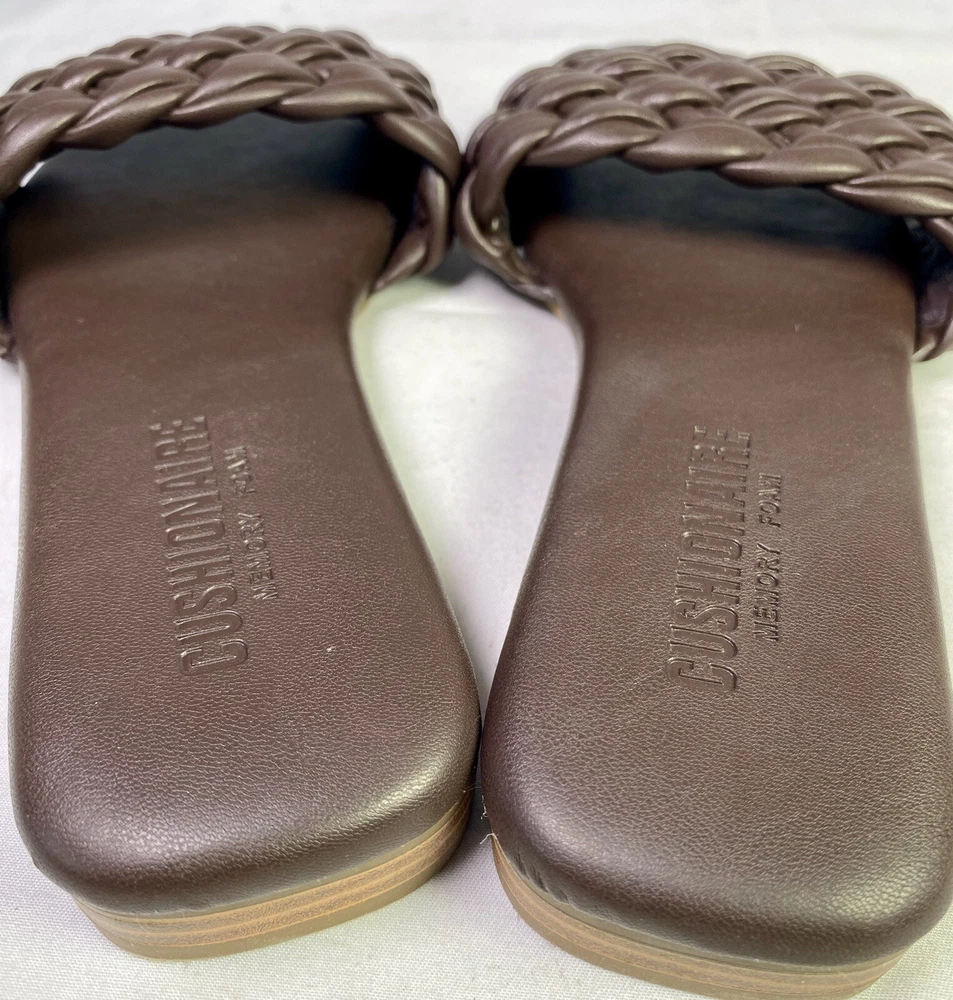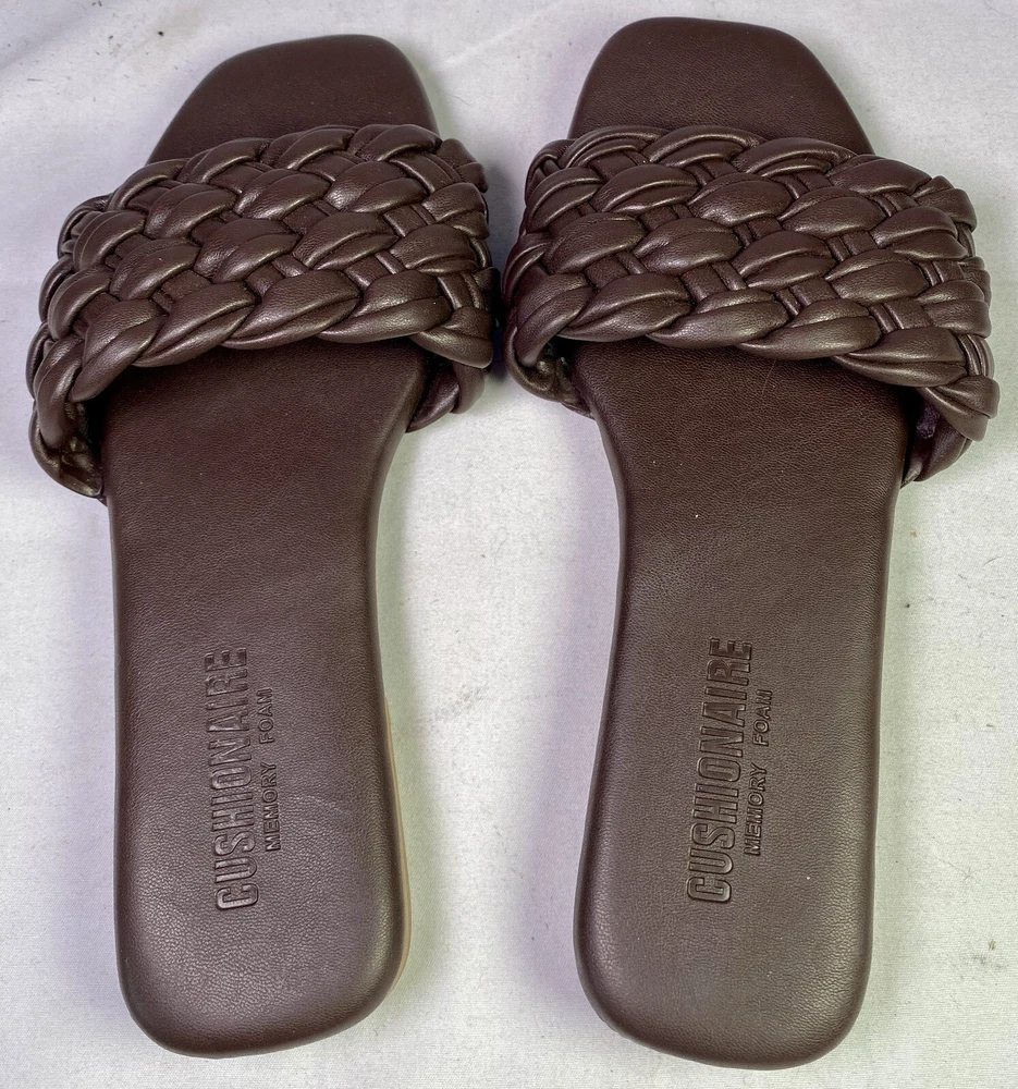 Features:Memory FoamColor:BrownHeel Height:Flat (Under 1 in)UPC:0808650324695Style:SlideBrand:CUSHIONAIRECountry/Region of Manufacture:ChinaShoe Width:MHeel Style:FlatUS Shoe Size:6Seller Notes:“Good condition as seen in photos.”Department:WomenUpper Material:Faux Leathergtin13:0808650324695Type:Sandal