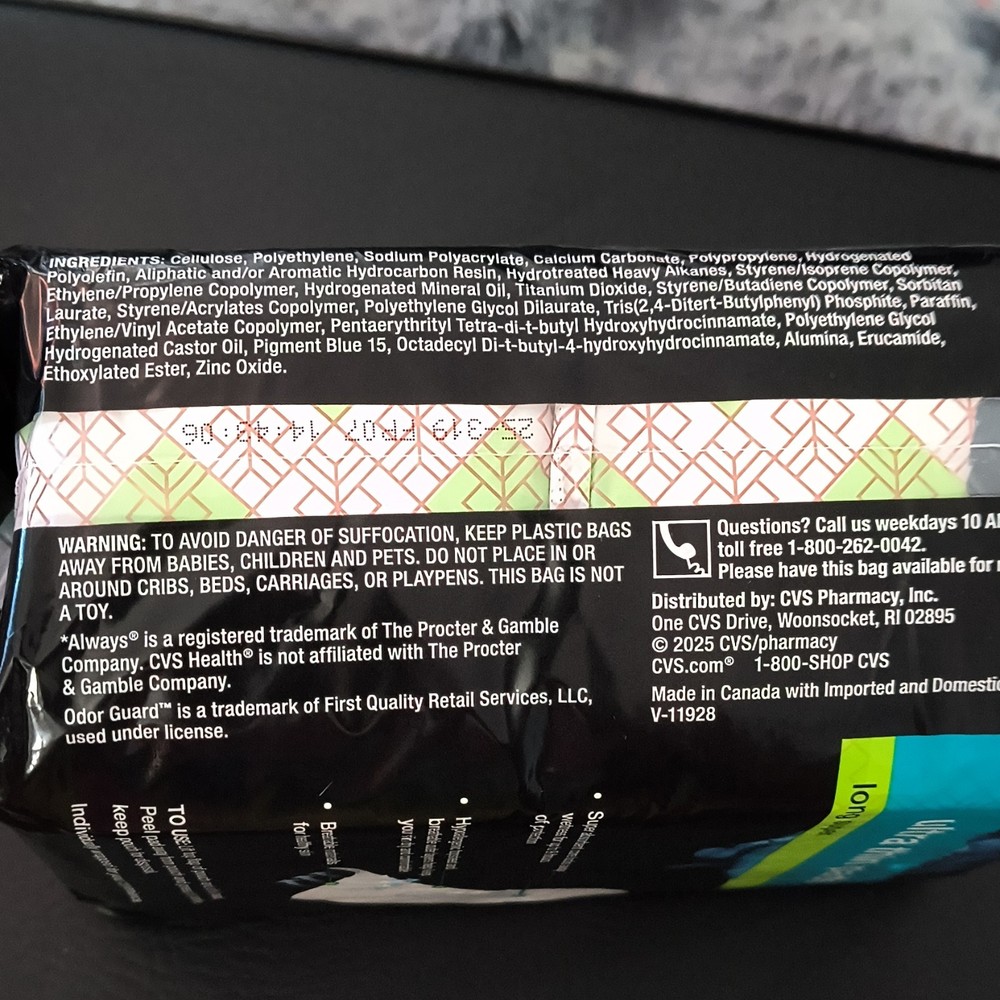 CVS Ultra Thin Pads Long Super Odor Guard Hypoallergenic 40 Pack