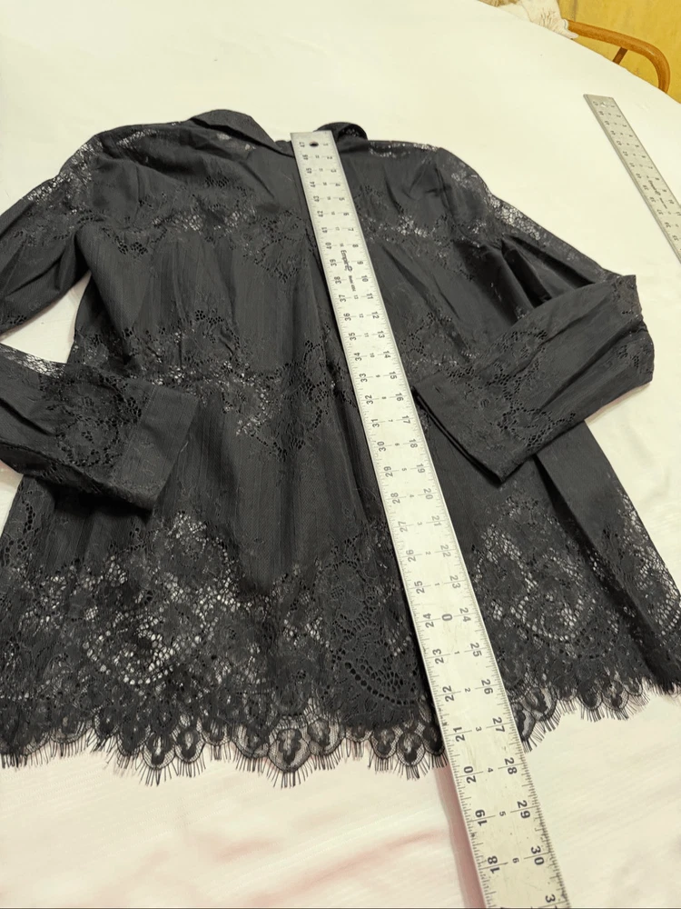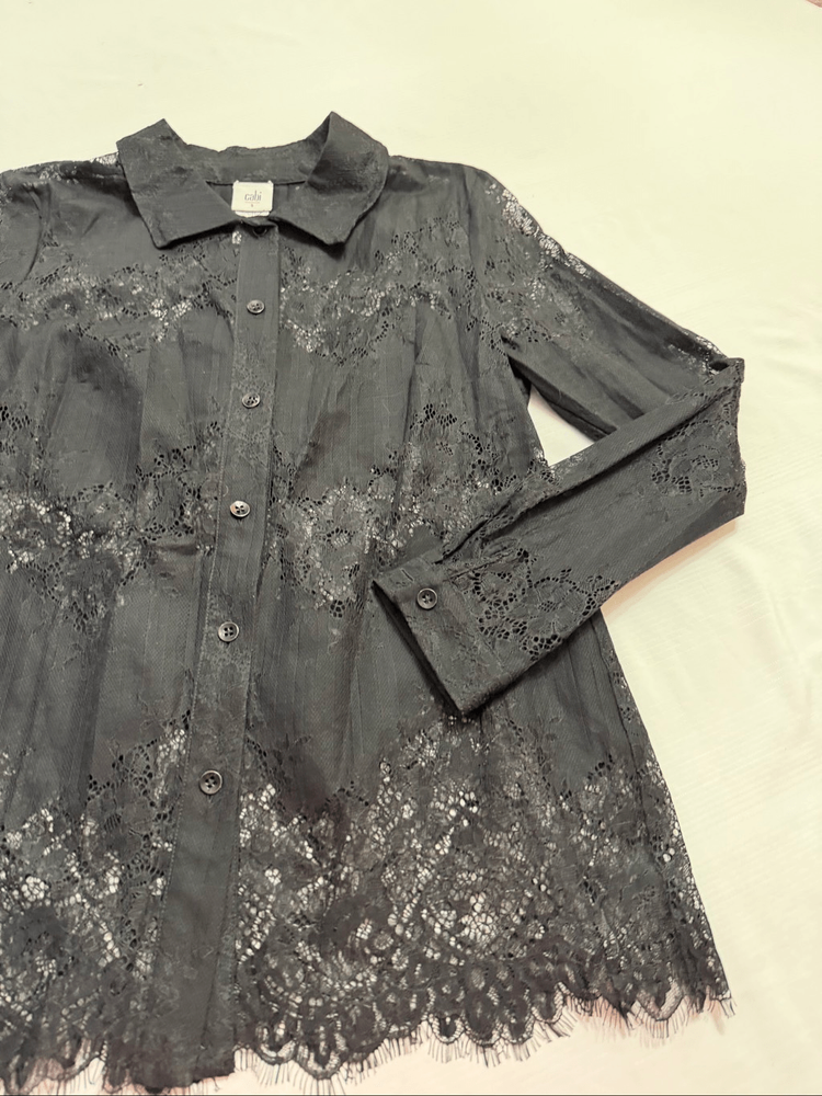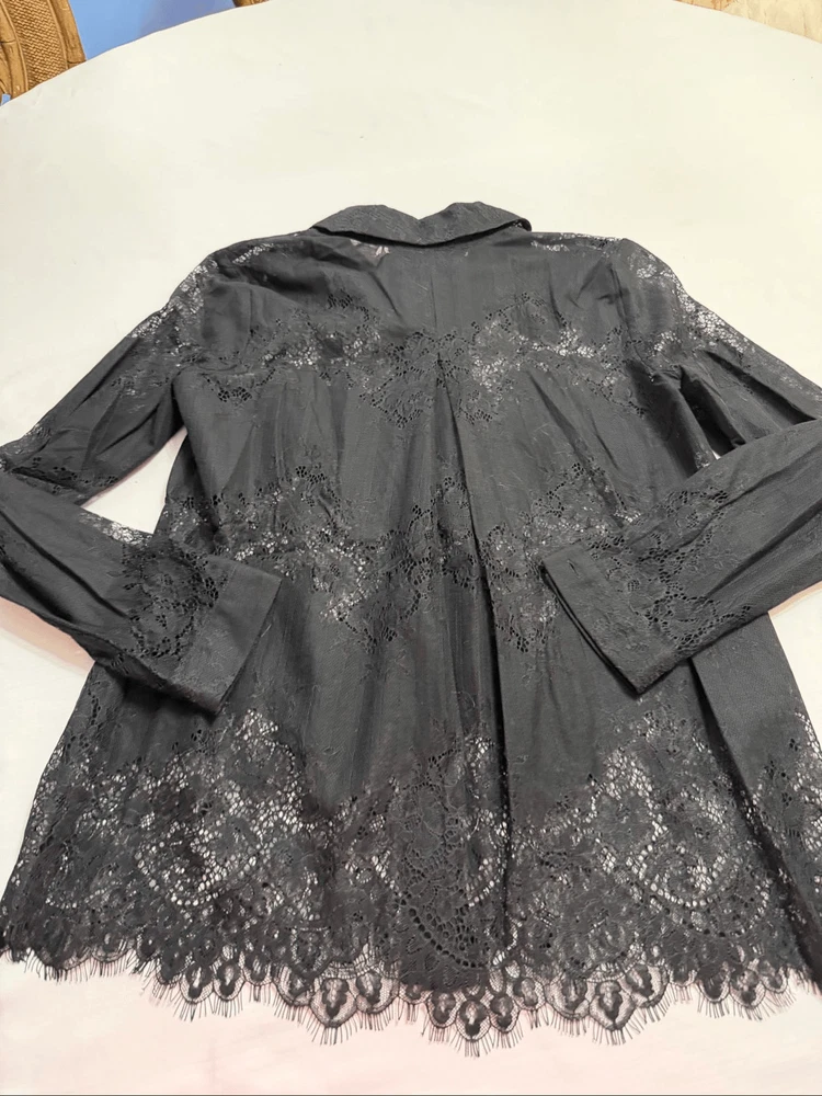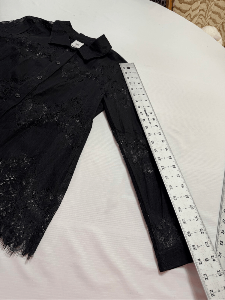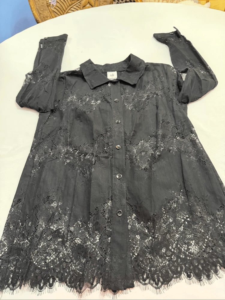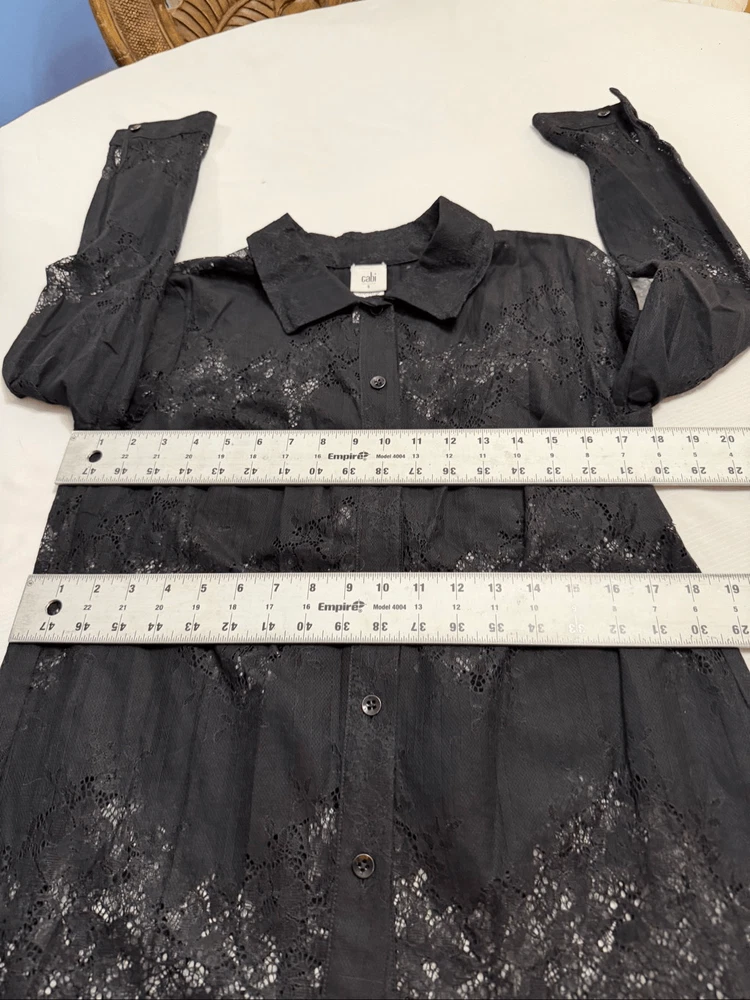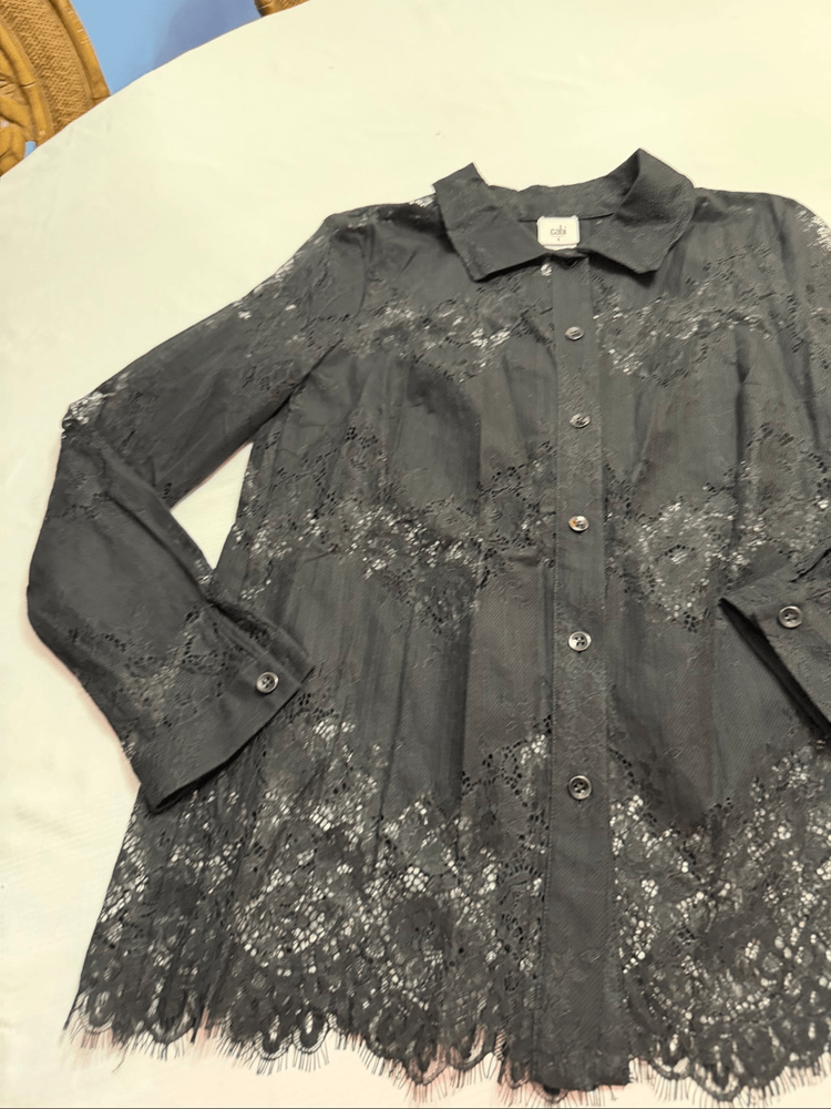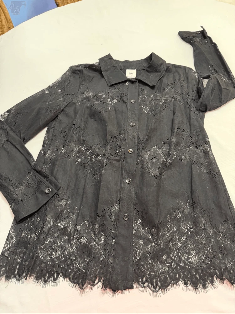 Cabi St. Regis Black Lace Lace Long Sleeve Button Down Blouse Women's Size Small 70% Nylon 30% Cotton Great Condition See photos for measurements O403