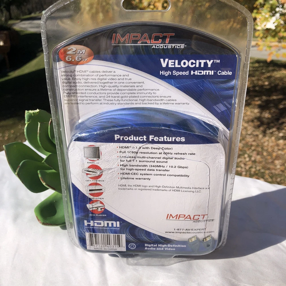 Impact (Cables to Go) Velocity Series 40315 HDMI Cable (Blue, 2M 6.6 Feet). New sealed
