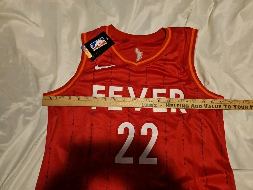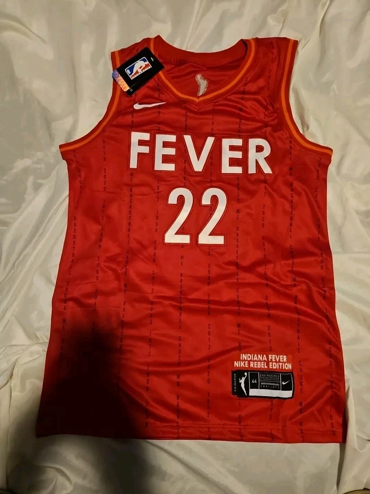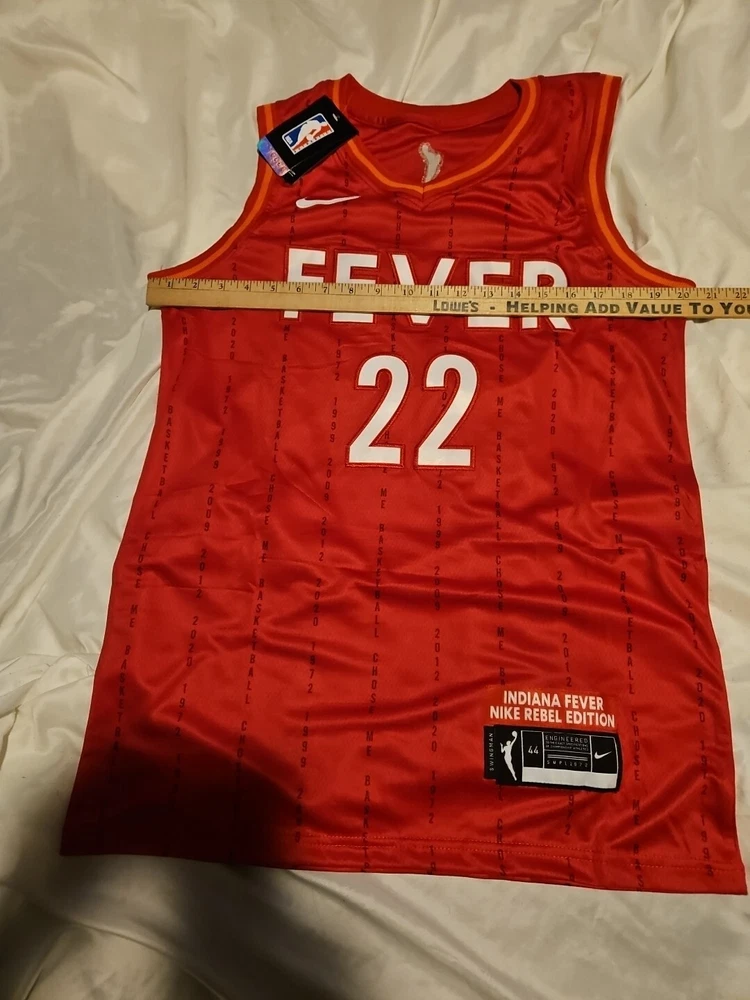 Show your support for the Indiana Fever with this beautiful Caitlin Clark jersey. Perfect for any basketball fan, this unisex adult jersey is a must-have for the regular season. The vibrant red color and stitched details make it a standout piece of fan apparel. Whether you're cheering on the team from the stands or watching from home, this jersey is sure to make you feel like a part of the action. It's available in adult size 44/small and is made from high-quality materials to ensure durability and comfort. Get your hands on this Women's National Basketball Association (WNBA) jersey with Fast shipping!