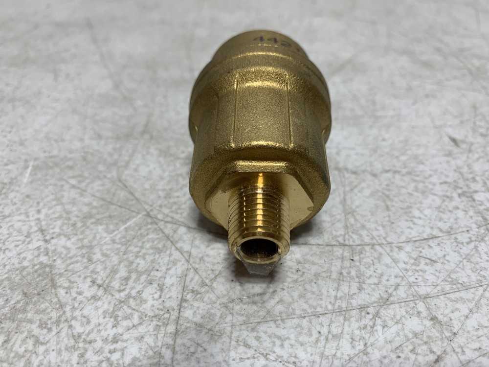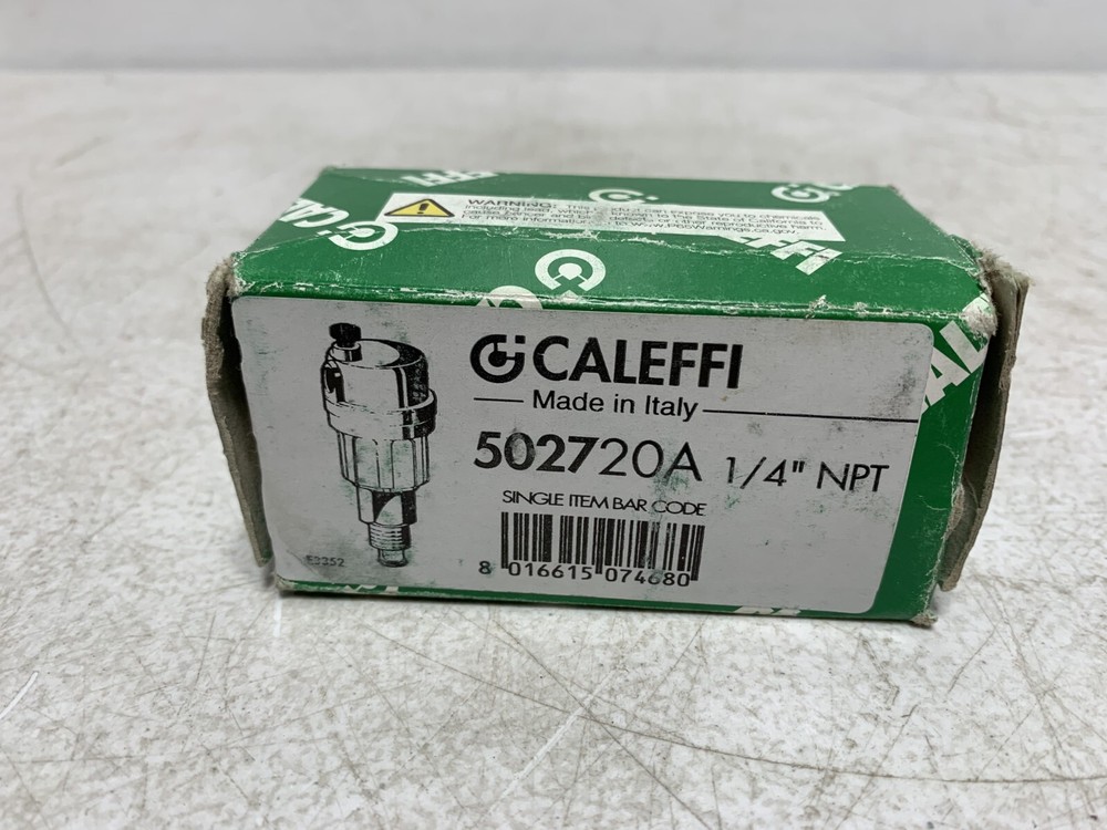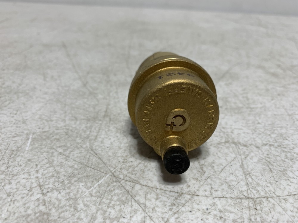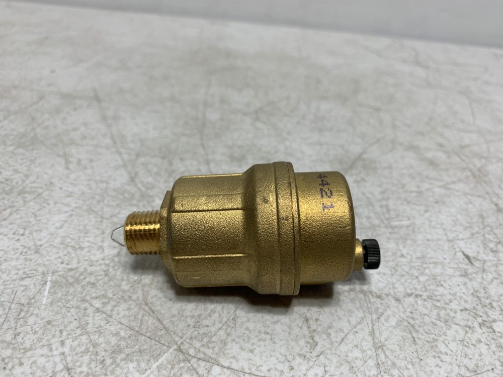 This is a NEW - unused Caleffi 502720A Automatic Air Vent with Check Valve 1/4" 150 psi Buyers and Re-sellers, don't miss this opportunity to purchase quality surplus equipment at a great price! There are many more surplus parts on our store, check it out! Return Policy: Returns are accepted within 60 days of the delivery date. Rest assured we will cover all return shipping costs! All returns must be in "as shipped" original condition to qualify for a refund. Photos of packing and product is required for damaged items. Customer returns that satisfy all of the above requirements will be issued a refund including any applicable sales tax DESCRIPTION These automatic air vents eliminate residual air in heating and air conditioning systems without the need for manual intervention. This prevents undesired noise, wear of devices in the circuits and inefficient performance of heating units. Caleffi Automatic Air Vent, Series: 5027, 1/4 in Nominal, MNPT, 150 psi Max Working, 240 deg F, Brass, 1-9/16 in L x 4 in H SPECIFICATIONS Connection Type : MNPT Dimensions : 1-9/16 in L x 4 in H Material : Brass Nominal Size : 1/4 In Series : 5027 Temperature Rating : 240 deg F Working Pressure : 150 psi Max FEATURES 90 psi max discharge pressure 1.75 scfm max discharge rate