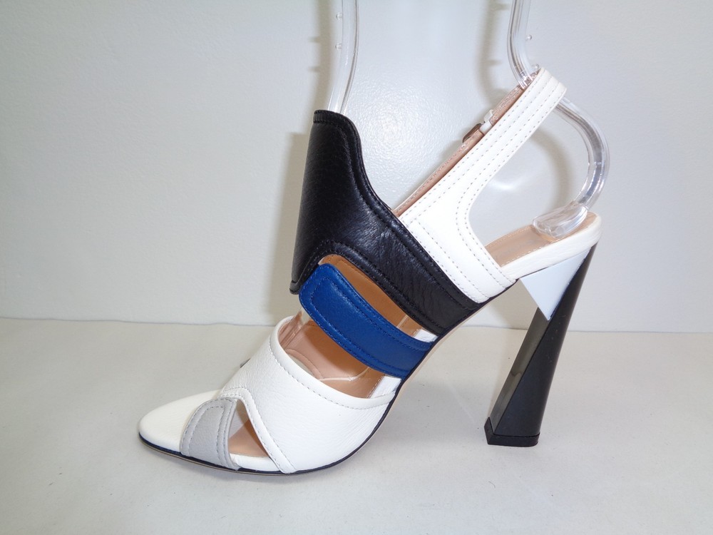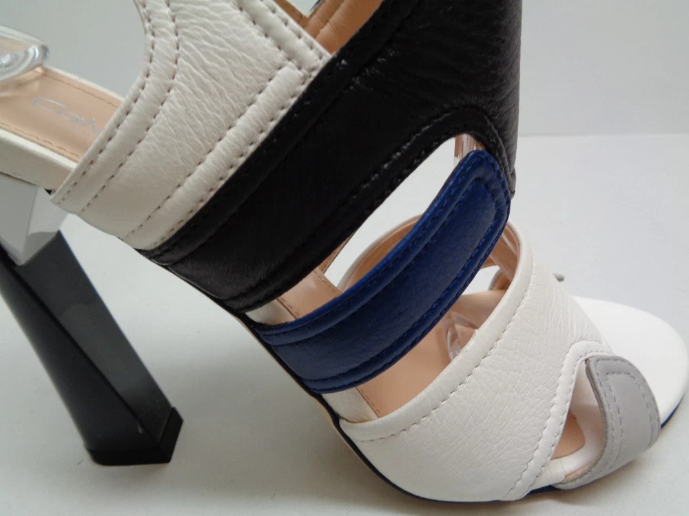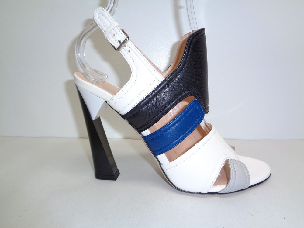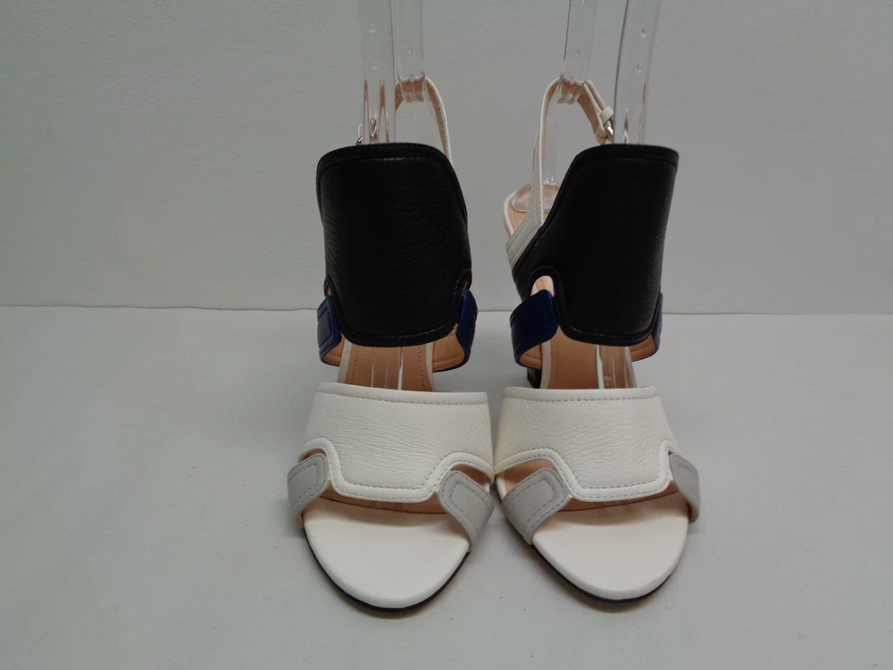 Calvin Klein Collection Size 7 M VERUSHKA White Leather Sandals New Womens Shoes -Style: VERUSHKA CERVO, J0002 -Color: White/Black/Angora -Leather upper, lining, and outsole -Buckle is silver color -Heel height approximately 4.5 inches -Eur 37 - There was no US size on these shoes. Converted to US size using a universal sizing chart.