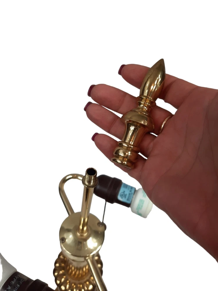 Candle Stick Hollywood Regency Design Tall Vintage Brass & Wood Table Lamp. In excellent condition Brass Candle Stick Lamp Large Hollywood Regency Vintage 1950s. Mid-century Modern, Hollywood Regency brass candlestick table lamp in Vintage bronze finish, with dual bulbs, and brass bell pull strings. Measurements 6.75ʺ W 8.5ʺ D 26.75ʺL STYLES Hollywood RegencyTraditional PERIOD 1950s ITEM TYPE Vintage, Antique or Pre-owned MATERIALS Brass Not included light bulbs or shade. This is a pre-owned item that may show signs of wear. In excellent condition, no flaws.