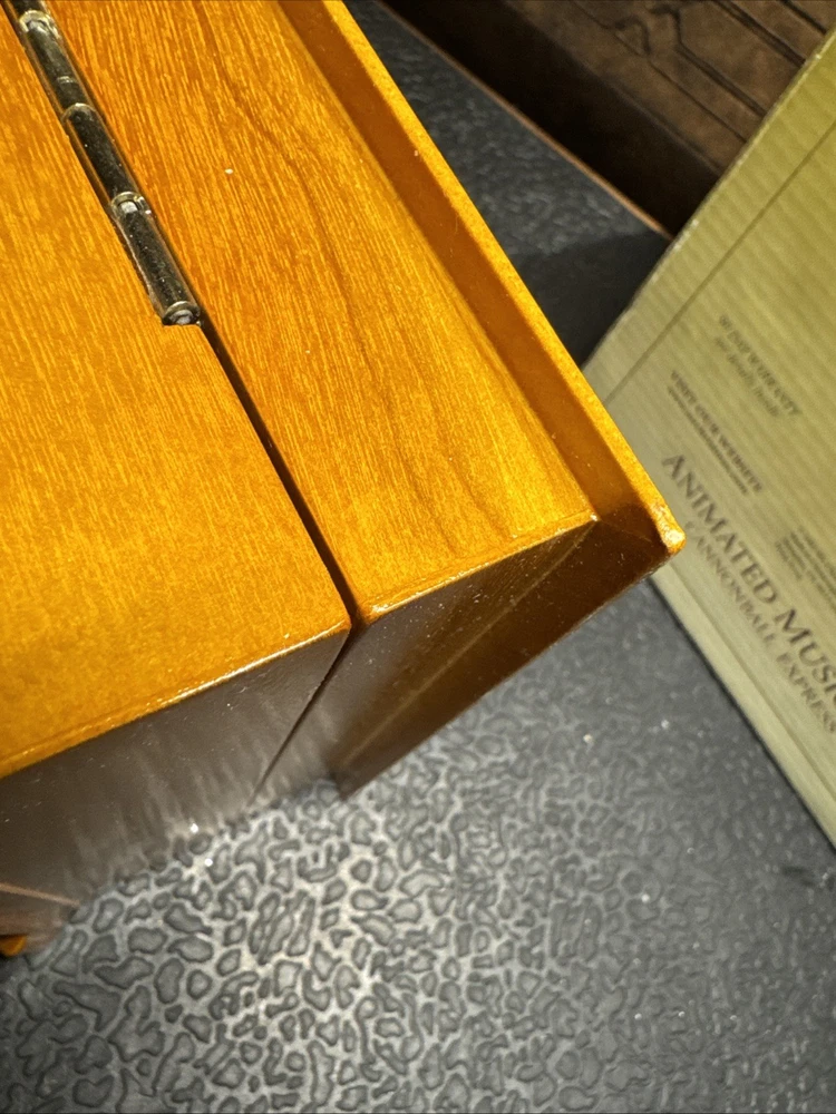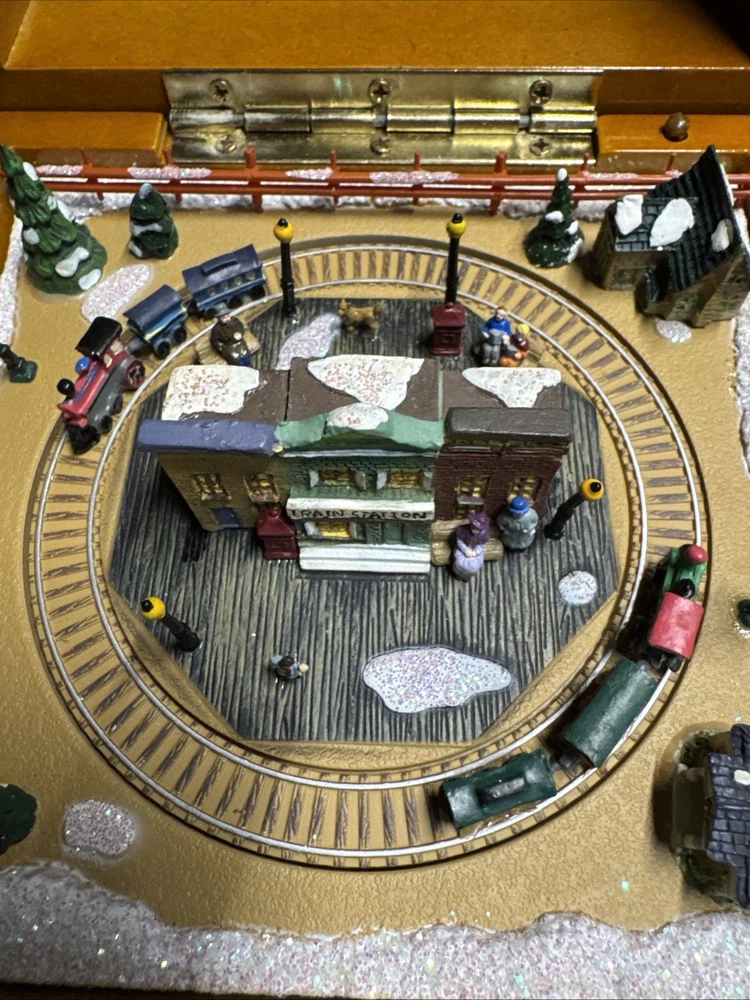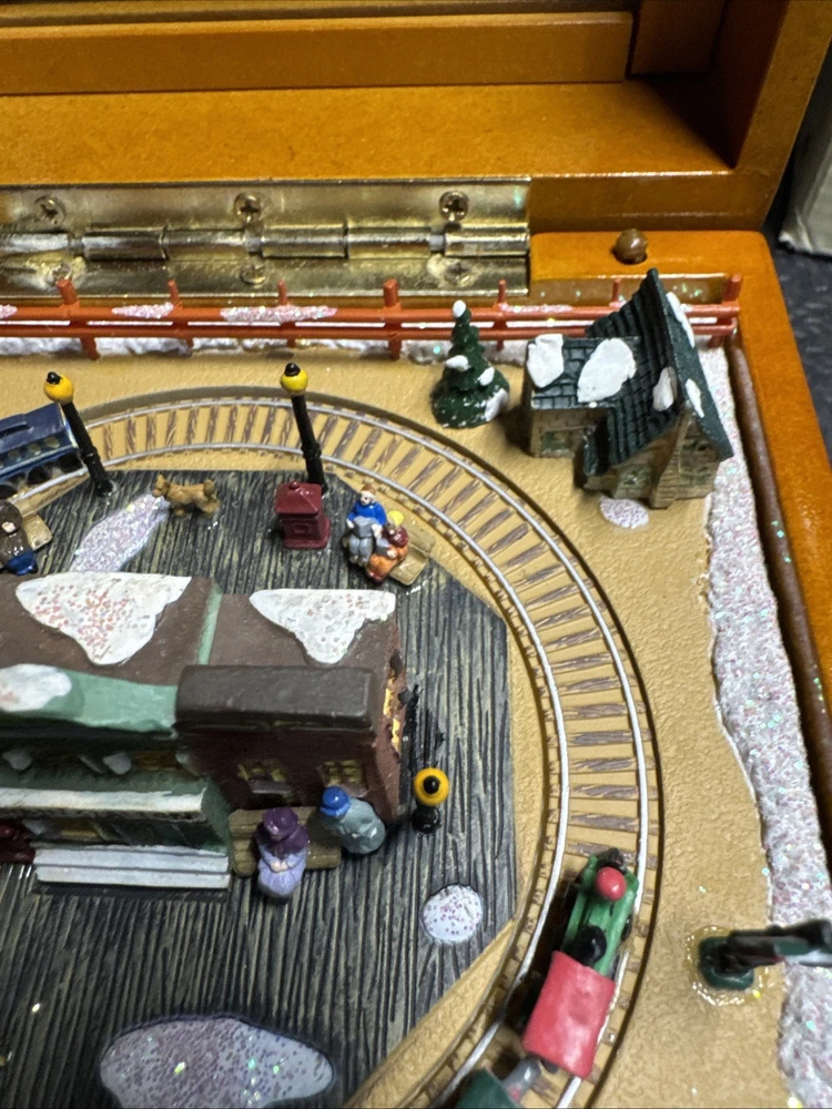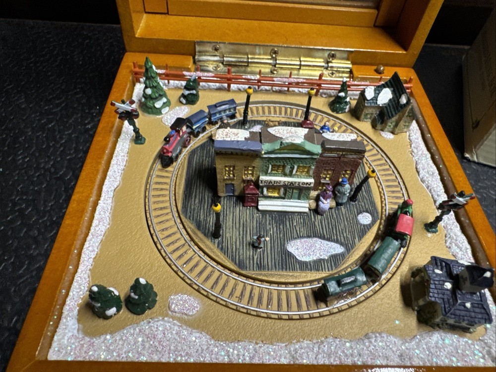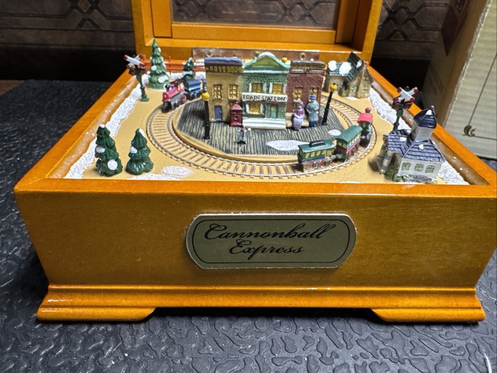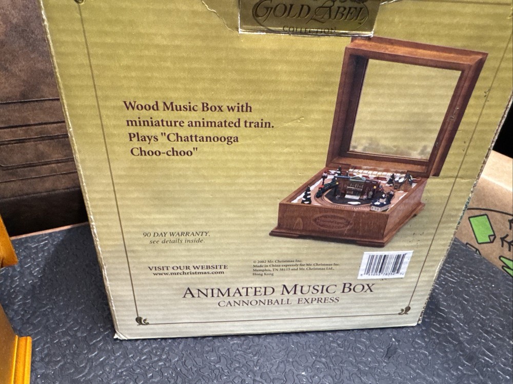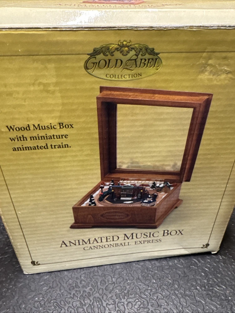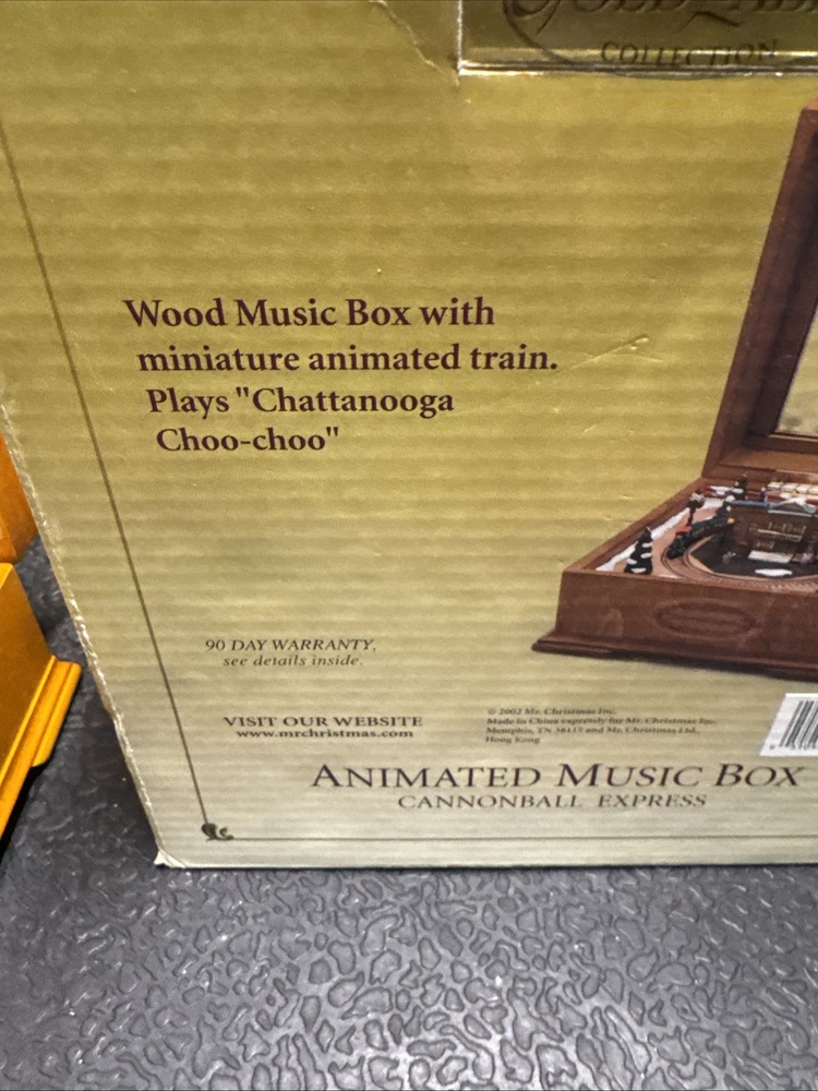 The Cannonball Express Music Box Gold Label by Mr. Christmas is a decorative collectible that plays the classic tunes of "Chattanooga Choo-Choo." Manufactured in China in the 21st century, this music box is a nostalgic and charming addition to any collection. With its intricate design and high-quality craftsmanship, this music box is sure to bring joy and whimsy to any space.