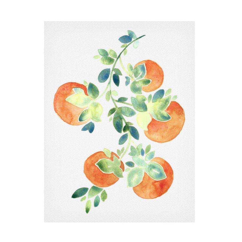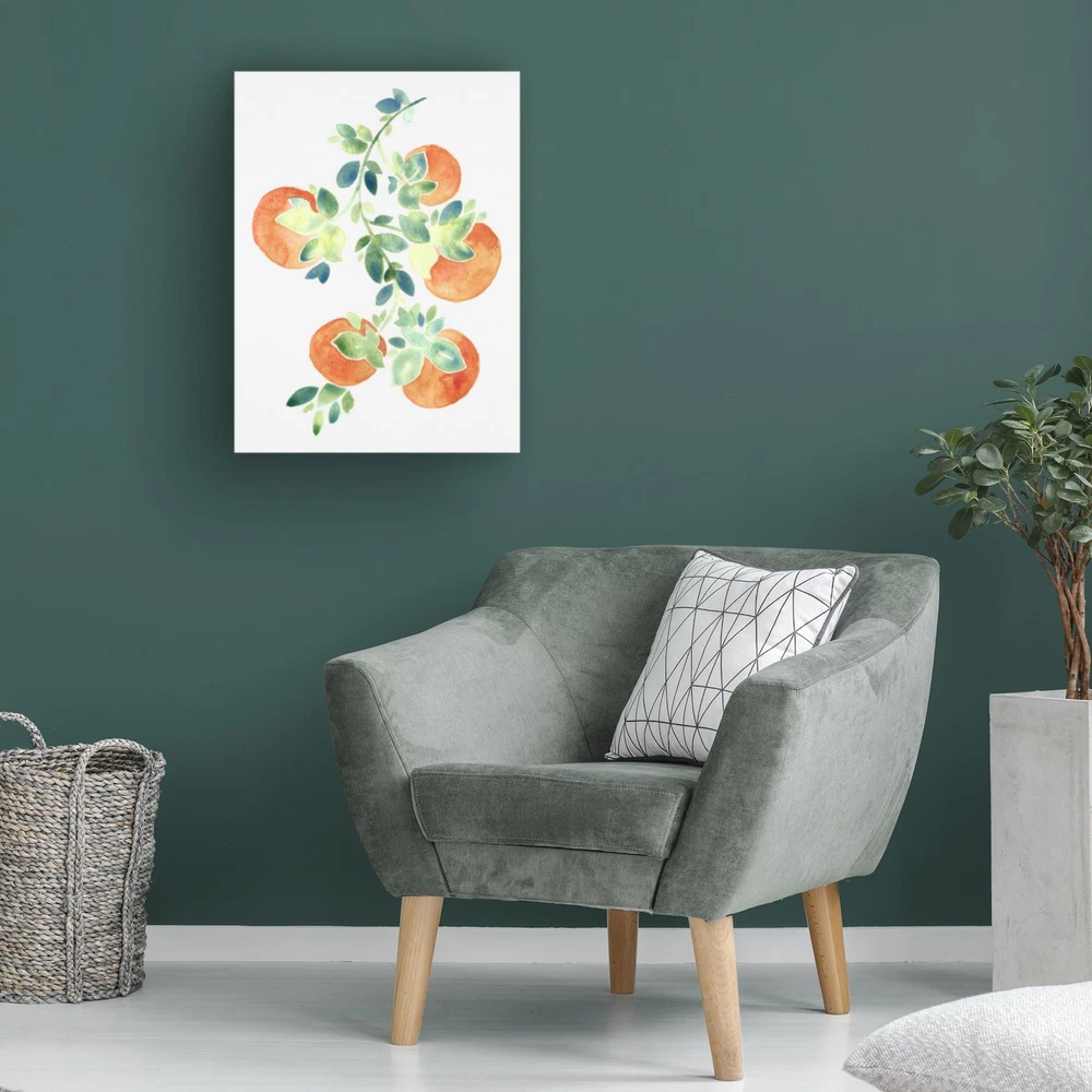 ART WALL CANVAS - This Cami Juncos 'Watercolor Oranges' canvas art by Image Conscious is sure to complement any room décor with its Modern & Contemporary style featuring flat painted flora on a white background.. GICLEE PRINTING - Each home décor piece is printed using Giclee, a printmaking process for creating high-quality fine art reproductions. The method results in rich details and color reproduction, making it nearly indistinguishable from the original piece. DURABLE MATERIALS - The wall art décor is printed on thick cotton poly blended canvas that is gallery wrapped around a sturdy natural wood frame, allowing for a frameless presentation and lasting quality. Each piece comes ready to hang for convenience. MADE IN THE USA - Not only does manufacture here in the US, but they also make all their canvas art products in the US for a truly 100% Made in the USA product. PRODUCT DETAILS - Materials: Natural Wood and OBA-Free Cotton/Poly Blend Canvas. Made in the USA.