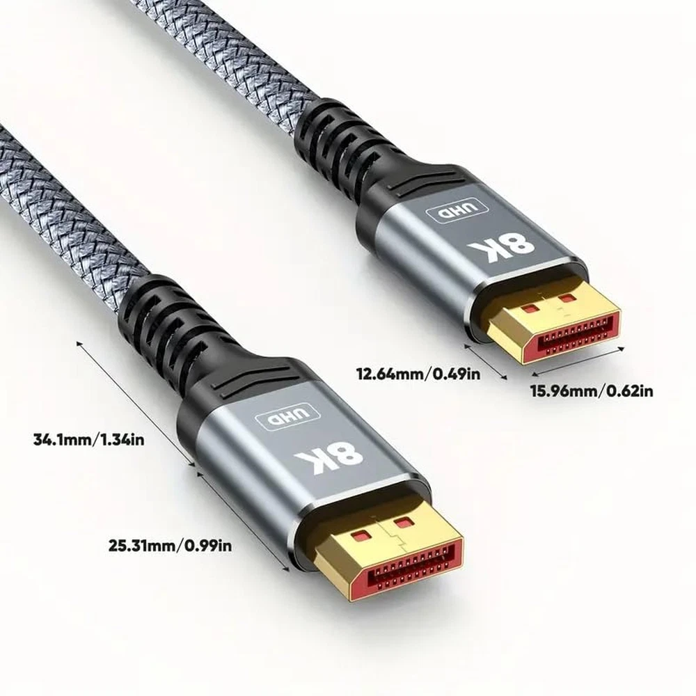 Capshi 8K 4K DisplayPort Cable 1.4, 6.6FT DP Cord (VESA Certified, 8K@60Hz, 4K@144Hz, 2K@240Hz/165Hz), 32.4Gbps High Speed Display Port Cable for Gaming Monitor, HDR/FreeSync/G-Sync, Braided, Grey Product Details Size: 6.6 Feet Style: 8K-1 Pack Color: Grey Brand: Capshi MPN: Capshi-6601 UPC: 738628999368 EAN: 0738628999368 Brand: Capshi Connector Type: DisplayPort Cable Type: Display Port Compatible Devices: Gaming Monitor, Desktop, Laptop, UHD TV, for AMD Graphics Card, for NVIDIA Graphics Card Special Feature: Braided, DP 1.4, High Speed Brand: Capshi Connector Type: DisplayPort Cable Type: Display Port Compatible Devices: Gaming Monitor, Desktop, Laptop, UHD TV, for AMD Graphics Card, for NVIDIA Graphics Card Special Feature: Braided, DP 1.4, High Speed Recommended Uses For Product: Displayport to Displayport 1.4 Color: Grey Connector Gender: Male-to-Male Data Transfer Rate: 32.4 Gigabits Per Second Shape: Round Number of Pins: 10 Frequency: 240 Hz AC Adapter Current: 3 Amps Unit Count: 6.6 Feet Gauge: 28.0 Specification Met: Vesa Indoor/Outdoor Usage: Indoor Number of Items: 1 Outer Material: Nylon Manufacturer: Capshi UPC: 738628999368 Package Dimensions: 7.2 x 7.17 x 0.79 inches Item Weight: 4.2 ounces Item model number: Capshi-6601 Date First Available: July 15, 2020 8K DisplayPort Cable 1.4: This VESA Certified Displayport 1.4 Cable supports 8K@60Hz, 5K@60Hz, 4K@144Hz/120Hz, 2K@240Hz/165Hz and HDCP 2.2/1.4. Display port 1.4 cable is more flexible and slimmer than 28AWG tinned copper, can directly be connected from DisplayPort equipped desktop/laptop to monitor Multi-functional Support: The 8K DisplayPort cable supports video resolutions up to 8K@60Hz and transmits HD audio and video from computer to display, ideal for video streaming and gaming. It is also backward compatible with DP 1.3/1.2/1.1 Advanced Technology: The cable delivers enhanced bandwidth via HBR3 (32.4 Gbps), featuring multiple shielding layers and 24K gold-plated connectors. Supports Display Stream Compression 1.2 (DSC), FEC error correction, 32-channel audio, plug & play functionality, and Mirror/Extended Modes Ultimate Gaming Experience: High refresh rates of 4K@144Hz and 2K@165Hz enable crystal-clear enemy tracking with zero frame drops. Dynamic HDR optimizes dark scenes and enhances visual details, delivering tactical advantages in FPS games and immersion in AAA masterpieces Universal Compatibility: The DisplayPort cable is compatible with all graphics cards and monitors with DisplayPort ports; It supports DP, DP++, and DisplayPort++; Avoid using extensions or adapters, as signal conversion may reduce performance