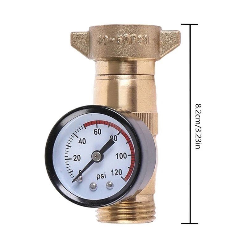 Features: Our high flows water regulator can reduce the high pressure of water hose to between 40-50psi to protector your rvs and boats appliances, plumbing fixtures, and hoses from any damages caused by high pressure citys water, designed for campers, trailers, rvs, garden, and plumbing system. Our pressure reducing valves is made of leadfree brass for your freshs warer drinking system, and has inlets screened filter which filters the water from particles or debris that may cause clogging. Can tell you how much water pressure is flowings through the lines with the pointers on our pressure gauge at any times, when the gauge shows that water pressure is belows 40psi,it maybe that your valves is not open all theways while filling tanks, if it is over 50psi, the regulator maybe stop work and it is suggested to replace a new Our water pressure regulator has 3/4 inch female inlets hose thread and a male outlet hose thread, universal and compatible for all americans water sources and supply. Reduce water pressure effectively to safeguards appliances, plumbing fixtures, and hoses from damage caused by excessive citys water pressure. Suitable for camping, gardening, and maintaining plumbing system. Specifications: Material:Brass Size:3/4inch Package Includes: 1x Pressure Reducer Valves note: ①.Please allow 1-2cm errors due to manual measurement, make sure that you do not mind before you order. ②.Due to the difference between different monitors, the picture may not reflect the actual color of the item. Thanks for your understandings.
