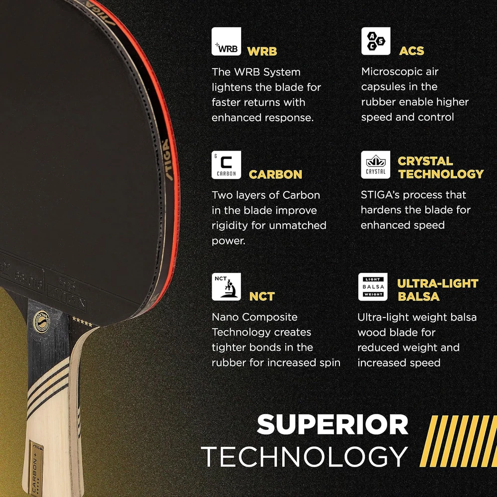 Store New Arrivals Add to Favorite View Feedback Contact Carbon+ Bundle Ping Pong Paddle Set – 7-Ply Extra Light Carbon Fiber Blade – 2Mm Premium Sponge – Concave Pro Handle – 2 3-Star Tournament Balls – Neoprene Racket Cover – Player Wristband Description Style Sport Table Game Package Weight 0.62 Kilograms Top Material Type Wood Material Mixture Suggested Users All Frame Material Wood Age Range (Description) Adult Item Package Dimensions L x W x H 12.4 x 8.7 x 1.97 inches Included Components Table Tennis Racket League Tennis Model Name Carbon+ Bundle Item Weight 0.59 Kilograms Item Dimensions LxWxH 8.75 x 1.5 x 12.75 inches Part Number T1076 Sport Table Tennis Assembly Required No Color Black Skill Level All Base Material Wood Global Trade Identification Number 00754806343310 Recommended Uses For Product Table Tennis Number of Players 4 Product Dimensions 8.75"L x 1.5"W x 12.75"H Size One Size STIGA – Since 1944, STIGA has been the innovative table tennis brand. Developing industry leading technologies for its table tennis equipment, STIGA combines superior craftsmanship with exceptional performance in every product. The highest quality equipment for all, from amateur to pro. That’s the STIGA heritage. ULTIMATE PACKAGE – Set includes Carbon+ racket, neoprene racket cover, STIGA player wristband, and two 3-star tournament balls BUILT FOR COMPETITION – STIGA's ACS Technology forms stronger and tighter bonds in the ITTF approved smooth inverted S5 rubber for high speed and spin with maximum elasticity and outstanding control—the perfect racket for tournament play. SUPERIOR TECHNOLOGY – This racket unites STIGA's Crystal and WRB Technologies for a hardened, light blade with faster returns, more power, and extra sensitivity of touch. PRECISION BLADE – The 7-ply blade boasts 5 layers of light-weight balsa wood and 2 layers of high-performance, integrated carbon fiber that combine with a 2mm sponge for a larger sweet spot and cleaner hits. PERFORMANCE RATINGS – Speed: 98, Spin: 94, Control: 75 From the manufacturer STIGA Carbon+ Bundle The Carbon+ Professional Bundle includes one professional level Carbon+ racket with one neoprene racket cover, a STIGA player wristband, and two 3-star tournament balls. STIGA's ACS Technology forms stronger and tighter bonds in the ITTF approved smooth inverted S5 rubber for high speed and spin with maximum elasticity and outstanding control—the perfect racket for tournament play. This racket unites STIGA's Crystal and WRB Technologies for a hardened, light blade with faster returns, more power, and extra sensitivity of touch all designed to help you dominate your opponent. The 7-ply blade boasts 5 layers of light-weight balsa wood and 2 layers of high-performance, integrated carbon fiber that combine with a 2mm sponge for a larger sweet spot and cleaner hits. The Carbon+ racket is a perfect blend of cutting-edge technologies and advanced materials allowing you to experience the extreme power and spin found in rackets used by STIGA’s top players around the world. PERFORMANCE RATINGS – Speed: 99, Spin: 100, Control: 80 SUPERIOR TECHNOLOGY This racket unites STIGA's Crystal and WRB Technologies for a hardened, light blade with faster returns, more power, and extra sensitivity of touch. ULTIMATE PACKAGE Set includes Carbon+ racket, neoprene racket cover, STIGA player wristband, and two 3-star tournament balls. NEOPRENE RACKET COVER Safely store your paddle while prolonging its tack-life resulting in sharper hits, increased spin, and demanding control. BUILT FOR COMPETITION STIGA's ACS Technology forms stronger and tighter bonds in the ITTF approved smooth inverted S5 rubber for high speed and spin with maximum elasticity and outstanding control—the perfect racket for tournament play. ABOUT US We offer the best prices around on high quality products. Our E-store includes media such as books, movies, music and games while offering electronics, toys, sporting apparel, clothing, tools, general home, garden items and more. SHIPPING We are always working hard to ensure your package arrives as soon as possible. Please understand that some factors like weather, high postal traffic, and the performance of shipping companies are outside of our control. We offer free shipping to the lower 48 states and ship within 2 business days of payment, usually sooner. We do not accept P.O. Boxes. Please provide a physical address. For shipping outside of the continental USA, we only use eBay's Global Shipping Program.The item is shipped to KY and then sent to the rest of the world. International customers are responsible for all duties and taxes. Continue to check out in order to calculate costs for shipping the item to your country. Messages regarding eBay's Global Shipping Program MUST be directed at eBay EXCLUSIVELY. RETURNS We offer a 30-Day Return Policy on items which you are not completely satisfied with. You have the option for a full-refund or an exchange of the item. No returns are available on items shipped outside of the USA. PAYMENT We accept PayPal. CONTACT US This page content is yet to come Please ad us to your favorite seller and visit again later Thank You CUSTOMER SATISFACTION We try our very best to make sure every customer is completely satisfied. If there's a problem, message us! We're happy to help. WE ACCEPT Copyright © 2021 AutoDS. | All Rights Reserved
