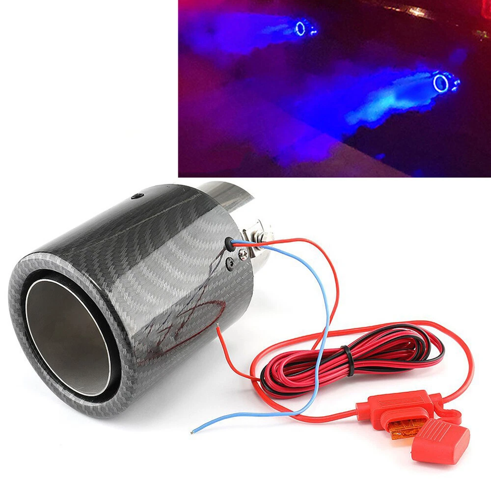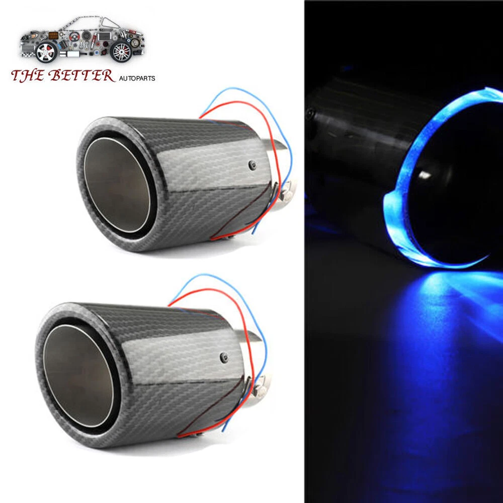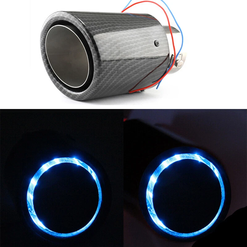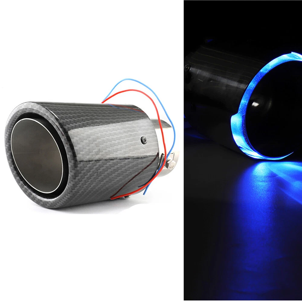 Description: Main Function: Enhance the power, extend the service life of the car, improve driving comfort. Excellent Performance: With LED light effect, stylish and beautiful, make your car looks more cool. Premium Quality: Made of stainless steel and carbon fiber, lightweight and durable. Built to meet or exceed standard specification, and strictly follow factory quality control. Easy Installation: Easy and fast to install, comes with mounting harness, save time and effort. Specifications: Name: luminous tailpipe Carbon color: luster Light Color:Blue Material: aluminum alloy Applicable to: vehicles with exhaust pipe less than 63mm Please measure the size for your car pipe before make order. What You Get: 2*luminous tailpipe Note: 1.If you has any problem, please feel free to contact us. 2.Please let us know before you send us the neutral/negative feedback that wont help to finish the issues. And I will definitely try my best to provide the best solutions which would meet your satisfactory.