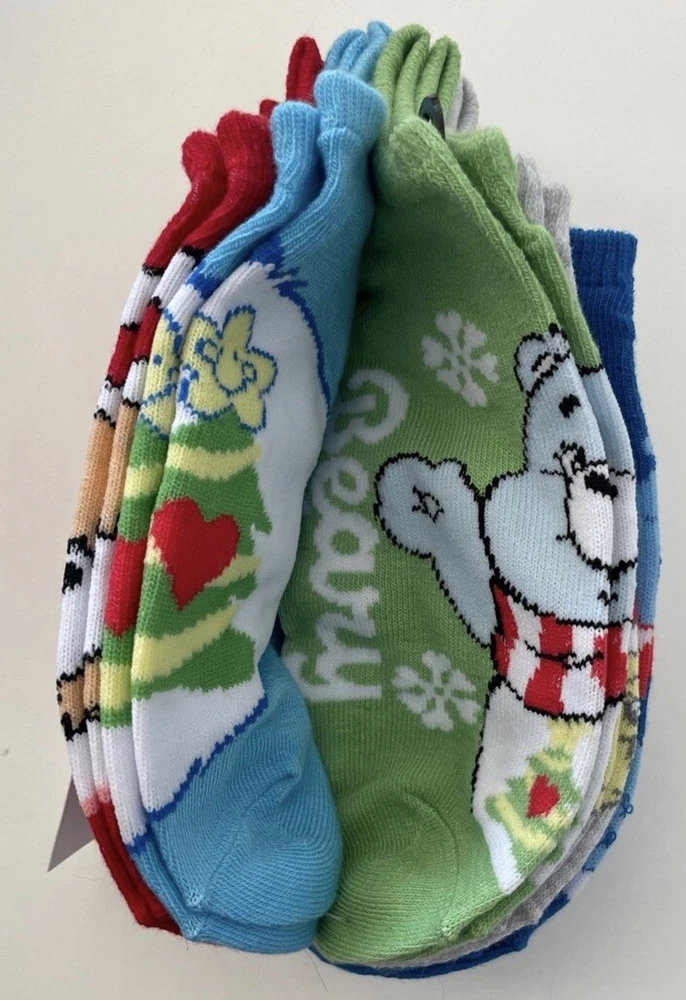Add some fun to your sock collection with these Care Bear Christmas women's no-show socks. The set includes five pairs of socks featuring the lovable Care Bears characters in a multicolor pattern. Perfect for any occasion, from activewear to casual wear, these socks are made of lightweight and breathable polyester and spandex material, making them comfortable to wear all year round. The full-toe design and no-show length provide a seamless look, while the machine washable garment care makes them easy to maintain. Ideal for walking and other activities, these socks are available in shoe size 4-10 and are perfect for any season. Get your hands on these socks and add a touch of fun to your wardrobe today!
