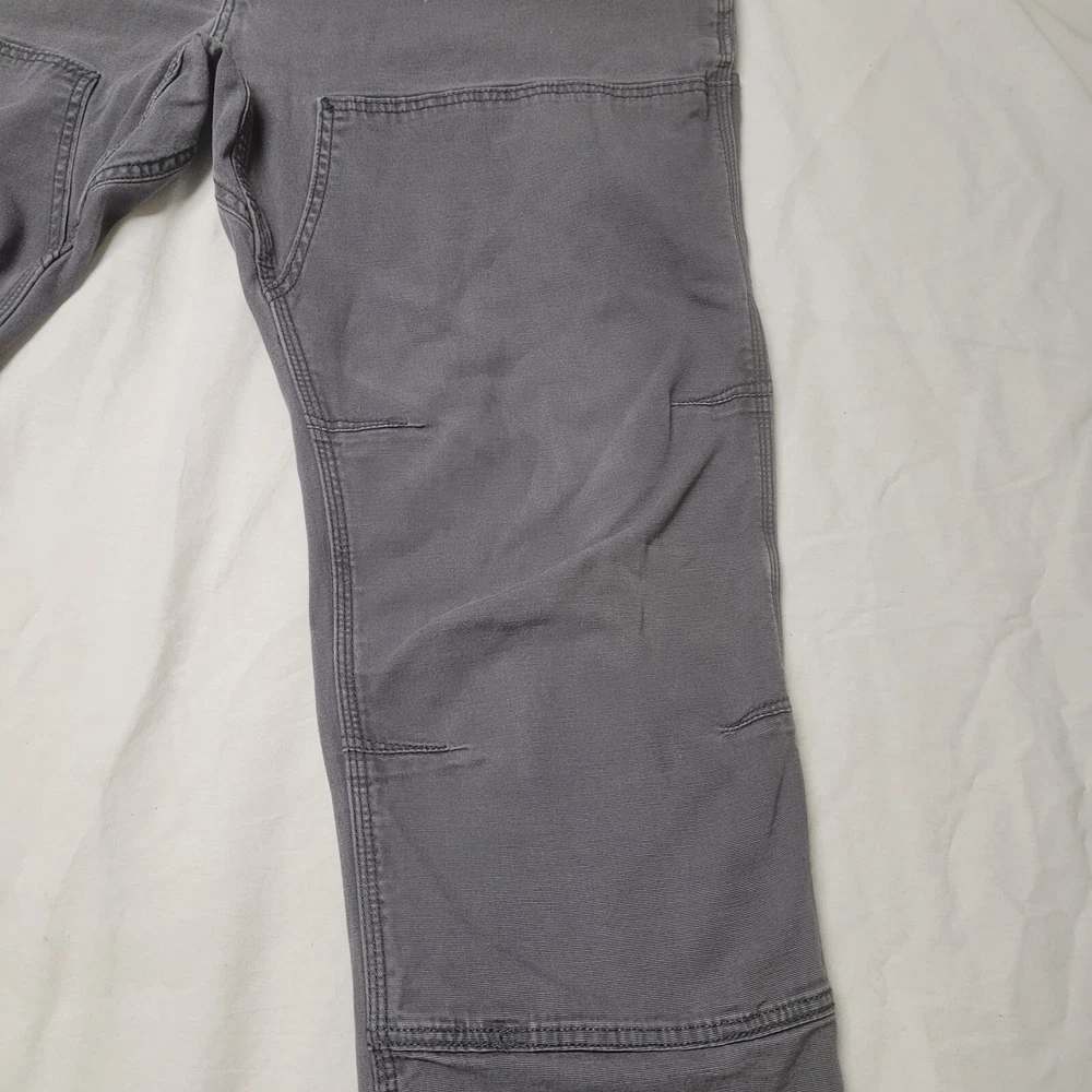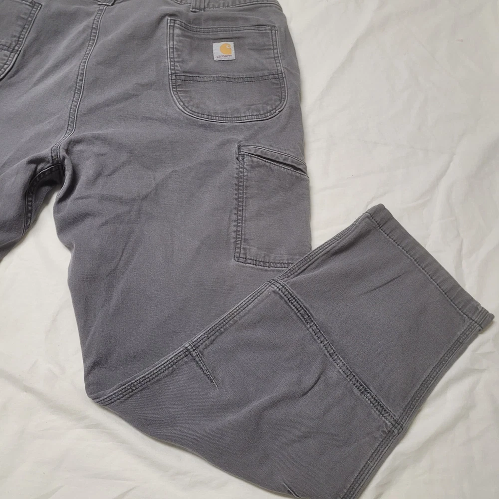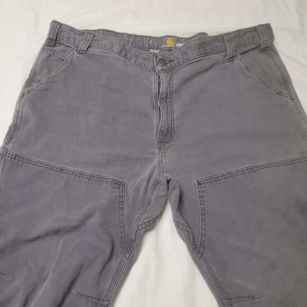 These Carhartt Gravel Gray pants are a versatile addition to any wardrobe. They feature a double knee design and a relaxed fit, making them comfortable and durable for work or casual wear. The pants are made of cotton canvas and have a flat front with a mid-rise waist. The pants come with multiple pockets, including cargo pockets and a 5-pocket design, providing ample storage space. They are available in size 42x32 and can be machine washed. The pants have a solid pattern and come with button and zipper accents, as well as the Carhartt logo. They are suitable for winter, summer, fall, and spring and are ideal for USA-themed, grunge, or 90s-themed outfits.