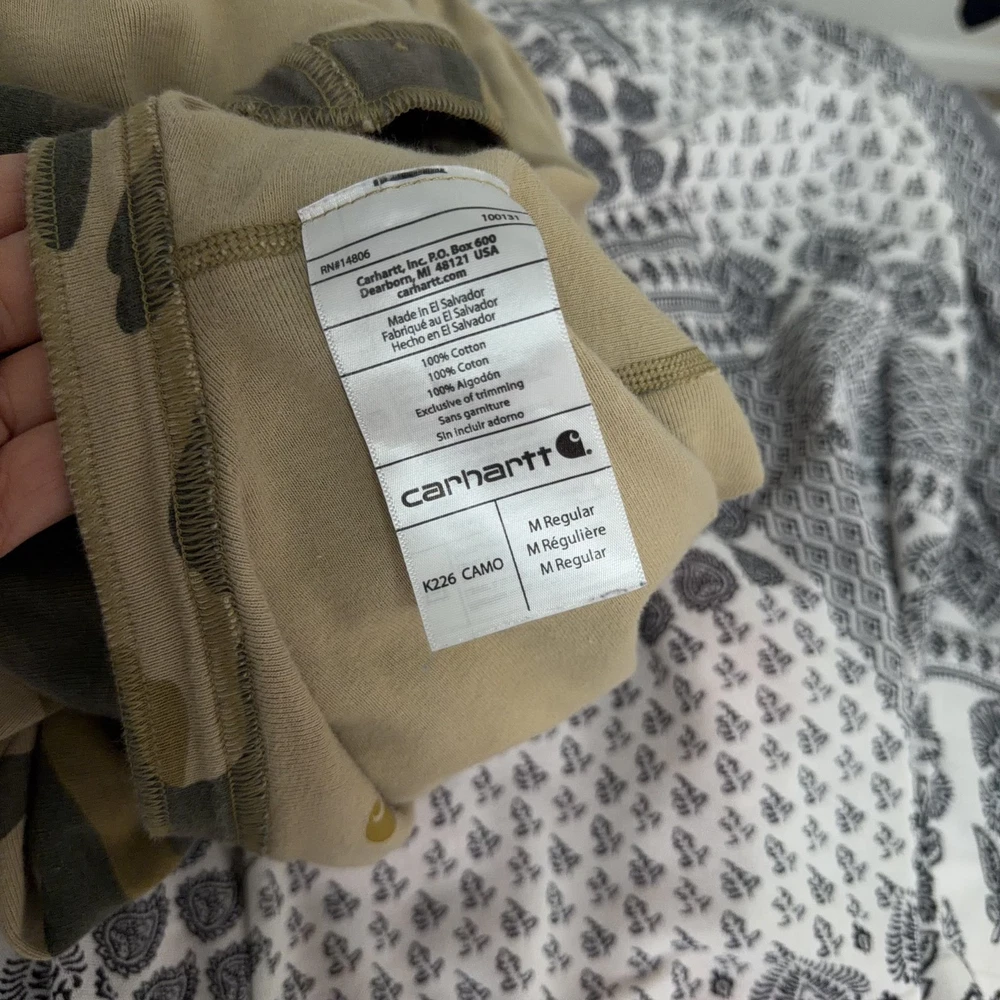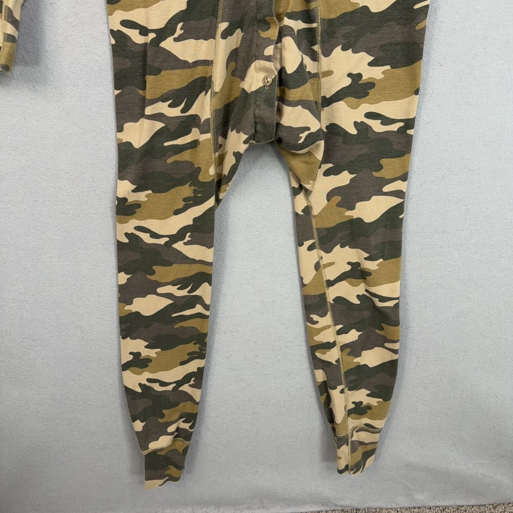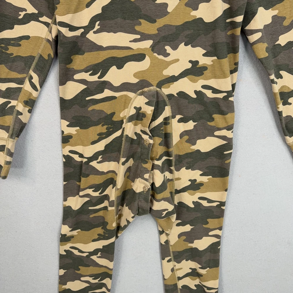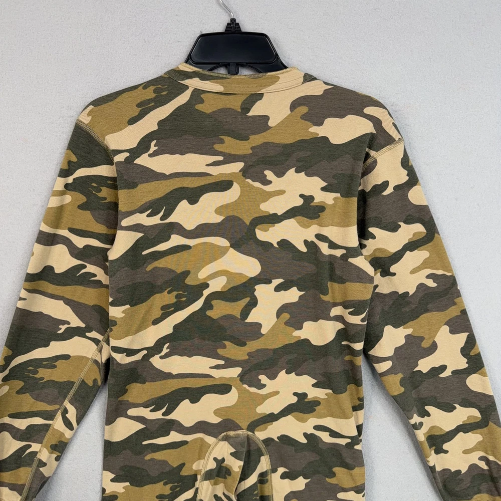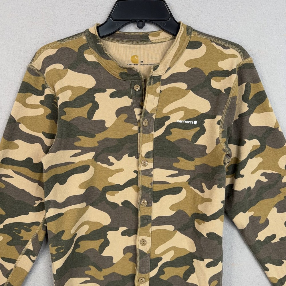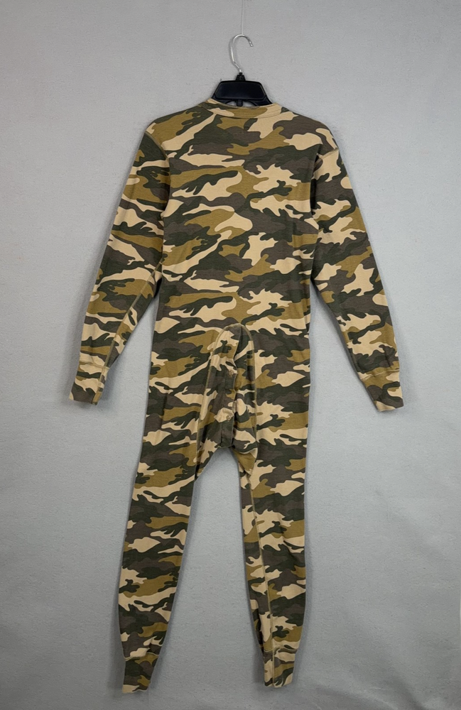 Carhartt Long Johns Mens Medium Camo Thermal Union Suit One Piece Base Layer Carhartt camouflage union suit. Fabric, seams, cuffs, and button closures are crisp and intact with no wear, stains, holes, or damage, and the drop-seat rear flap buttons securely. Tagless printed neck label and interior content tag are clean and legible; no original packaging included. Brand: Carhartt. Style: Mens long sleeve full-length union suit long john base layer underwear. Color: Green, brown, and tan camouflage print. Size: Mens Medium M Regular per interior printed and fabric tags. Material: 100% cotton exclusive of decoration per interior content tag. Fabric type: Lightweight jersey knit thermal fabric designed for layering. Details: Crew neckline, full button front placket, long sleeves with rib-knit cuffs, and full-length legs with rib-knit hems. Features: Allover camouflage pattern, one-piece construction for full coverage, tagless printed neck label for comfort, and functional buttoned drop-seat back flap. Branding and logos: Printed Carhartt logo at left chest, Carhartt wordmark and C logo printed at interior neck, and woven interior care and content label. Country of origin: Made in El Salvador as indicated on the interior tag. Tag information: Interior tag lists 100% cotton fabrication, RN 14806, size M Regular, and style code K226 CAMO. Intended use: Ideal as a thermal base layer for cold-weather work, hunting, camping, or everyday outdoor wear. Special notes: Carhartt camouflage long john union suit offering classic workwear-inspired warmth and coverage in a comfortable one-piece design. 25622 Measurements: Previous washings may change sizing on the tag. Refer to photos above for all measurements. Compare our measurements to one of your favorite garments. Measurements are approximate. All items are bagged and sealed after being photographed, then stored in a smoke free environment. Washed per eBay standards. I carefully package and ship daily. Contact me with any questions. Thanks