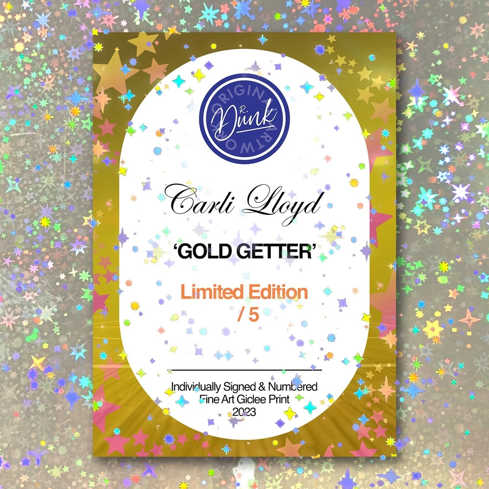 Carli Lloyd Holographic Gold Getter Sketch Card Limited 1/5 Dr. Dunk Signed You are looking at a fine art giclee print by Dr. Dunk. This limited edition original collectible sketch card will be signed and numbered on the back by the illustrator before shipping. Standard trading card size 2.5'' x 3.5'', hand crafted on 15mil glossy card stock. Comes in brand new top loader and fit sleeve. For custom designs, please send a message. *To ensure fair competition for jersey # match, each card starts at #1 and the next number is listed after it sells. Add your favorite cards to your watchlist for a better chance to secure your number. Listing Serial #0829 **-