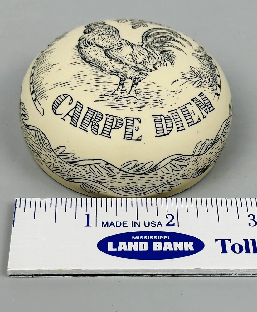 Rooster Paperweight Carpe Diem Seize The Day Decorative Carved Great Britain Good pre-owned condition with a few marks on the side. See photos for condition. I ship next business day, but sometimes same business day and Saturday if order is paid for early enough. Please let me know if you have any questions. I am open to offers!! Feel free to look at other items in my store! Thanks!